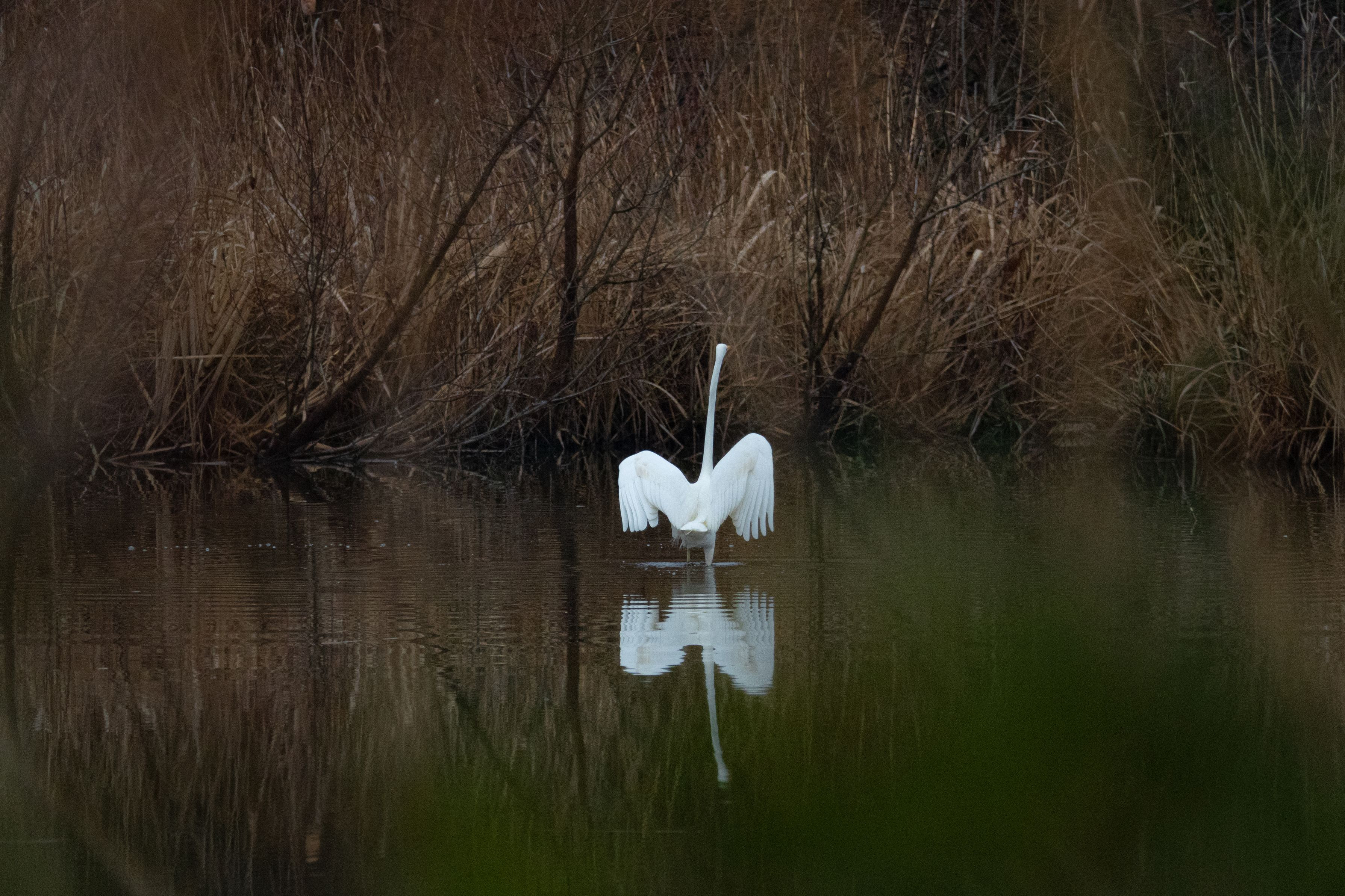 大鷺が羽を広げ初めた所