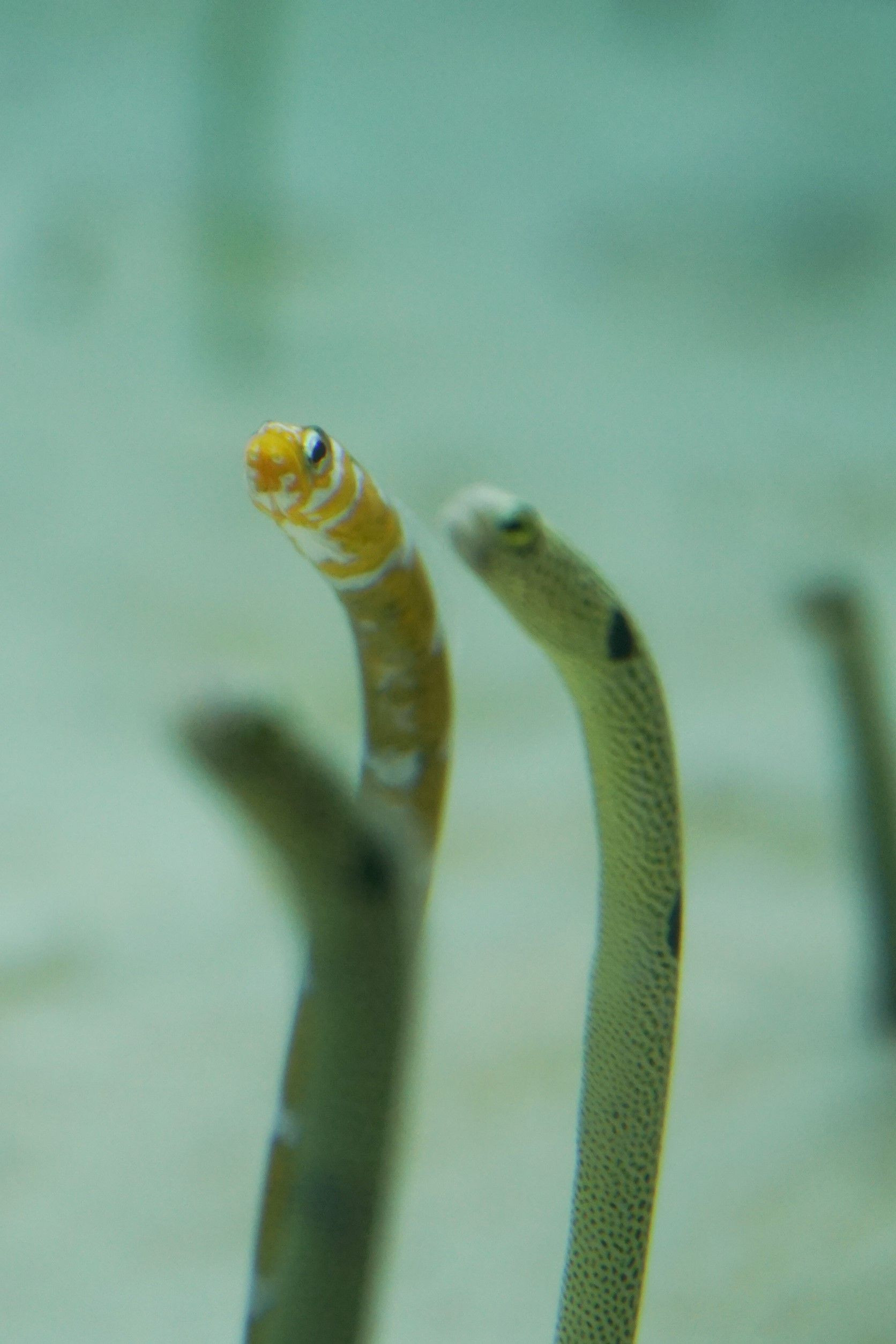 美ら海水族館で名物チンアナゴを撮影しました。 同じ方向を向いていて可愛かったですよ。