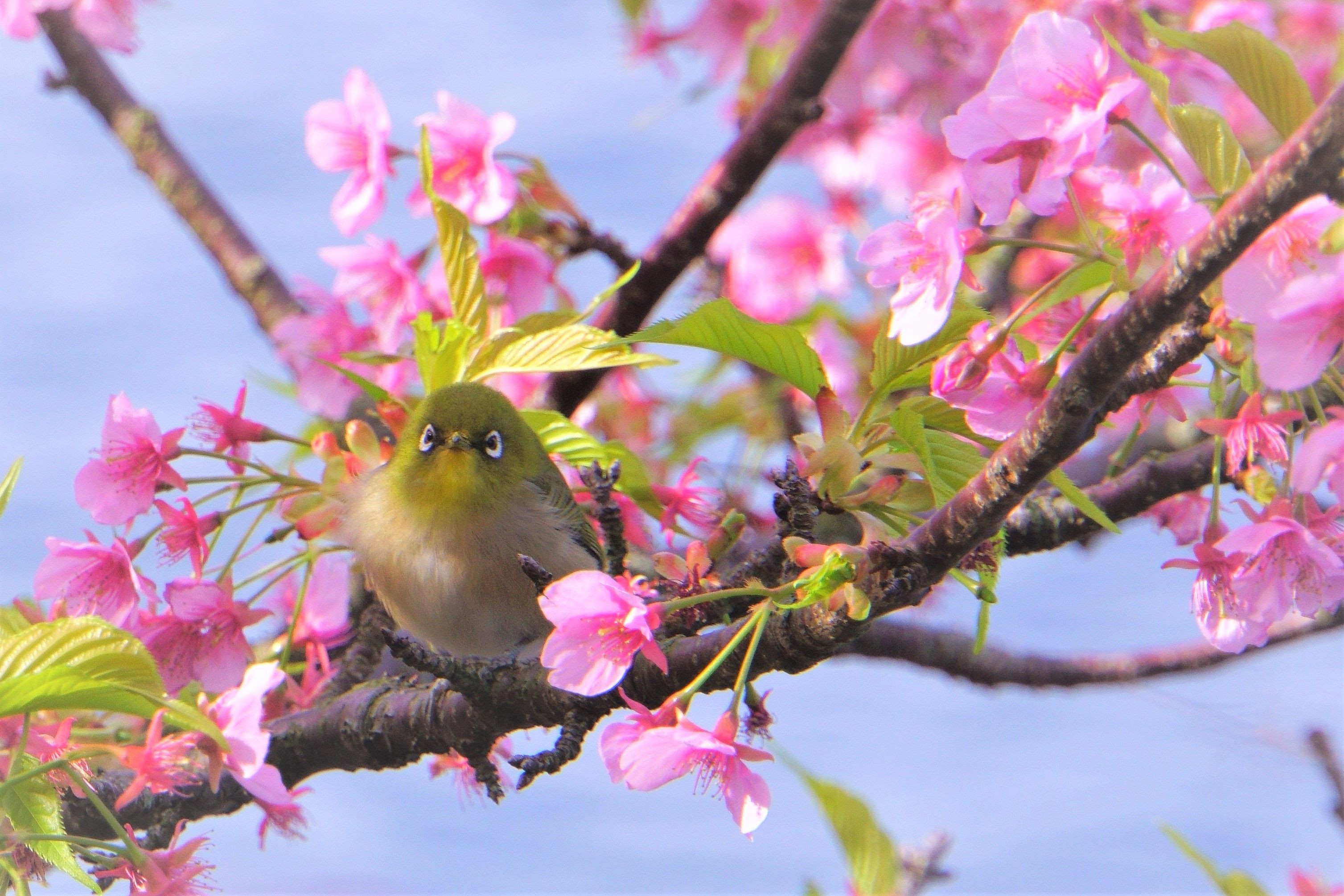 メジロの初撮りにチャレンジしてみました。 「こんにちは、はじめまして。お願いだからジーとしててね」