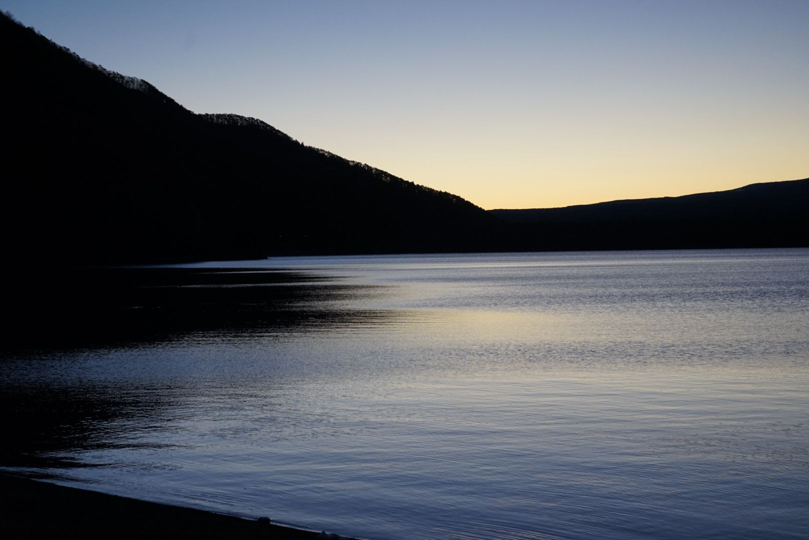 朝7時頃。湖の畔で撮影しました