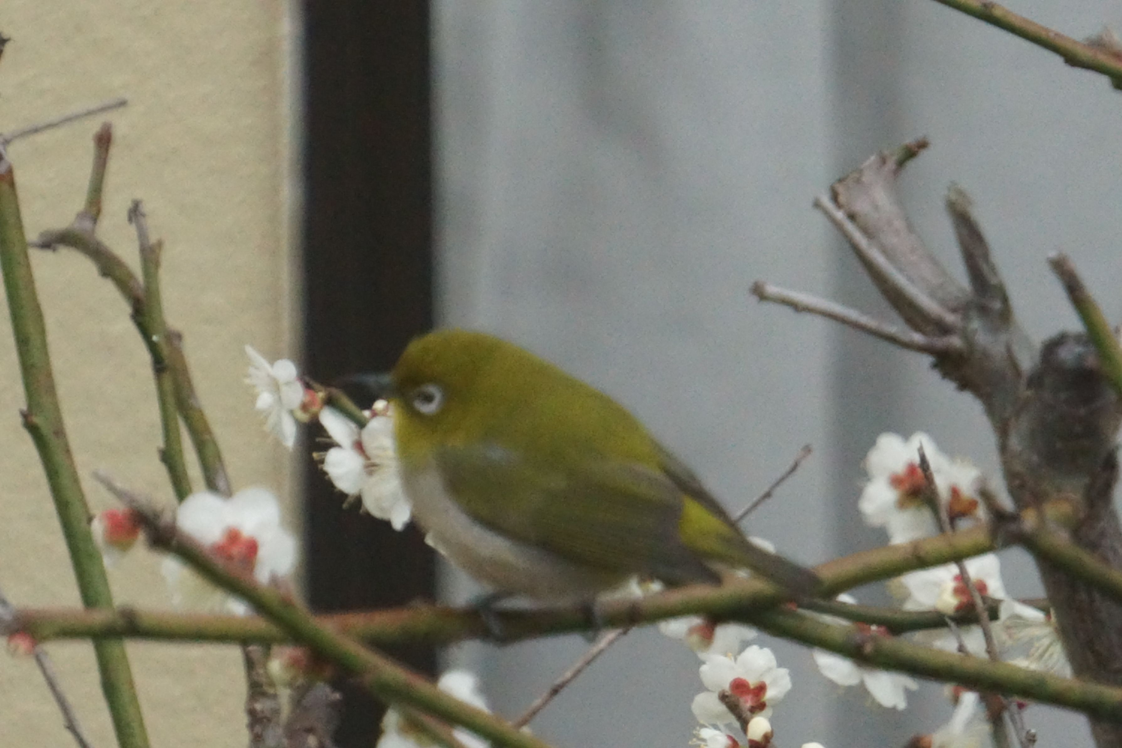 庭の梅の木に訪れてくれたメジロ。