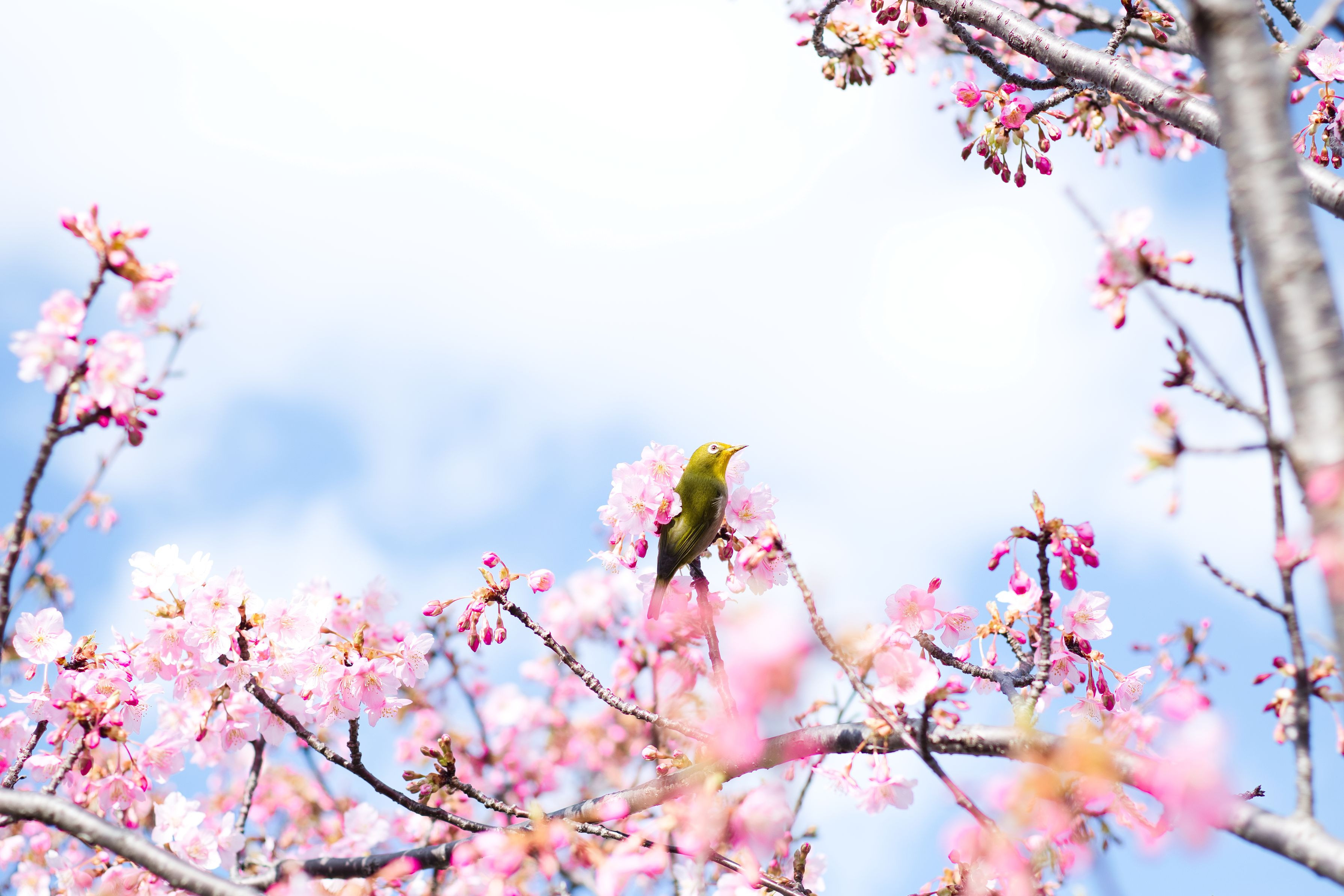 桜の花に包まれたメジロです。 絵に描いたようなポーズを奇跡的に撮影できました。 #メジロ# Milvus 2/50Mでの撮影です。