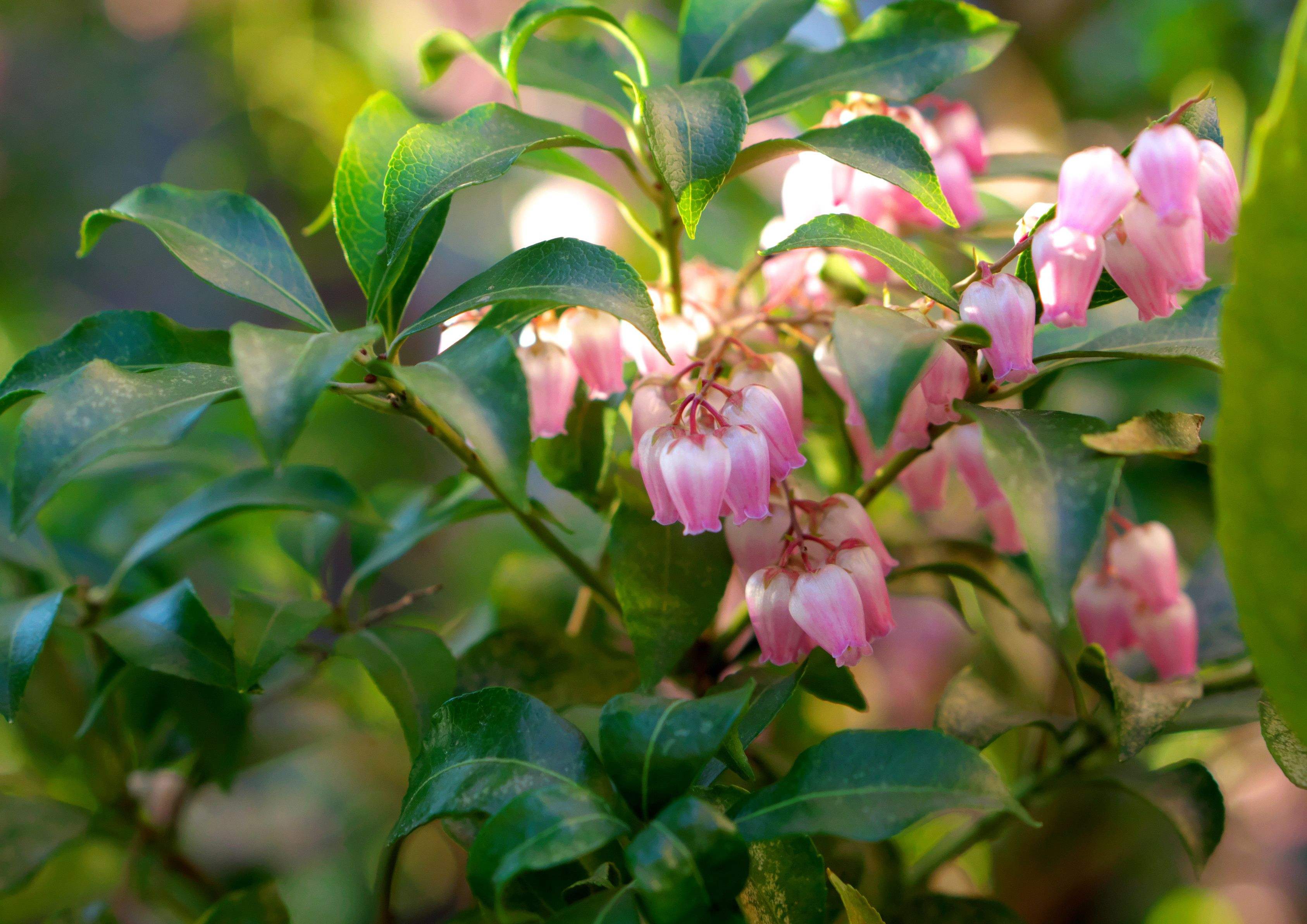 馬酔木の花が夕方の斜光を浴びて綺麗でした。