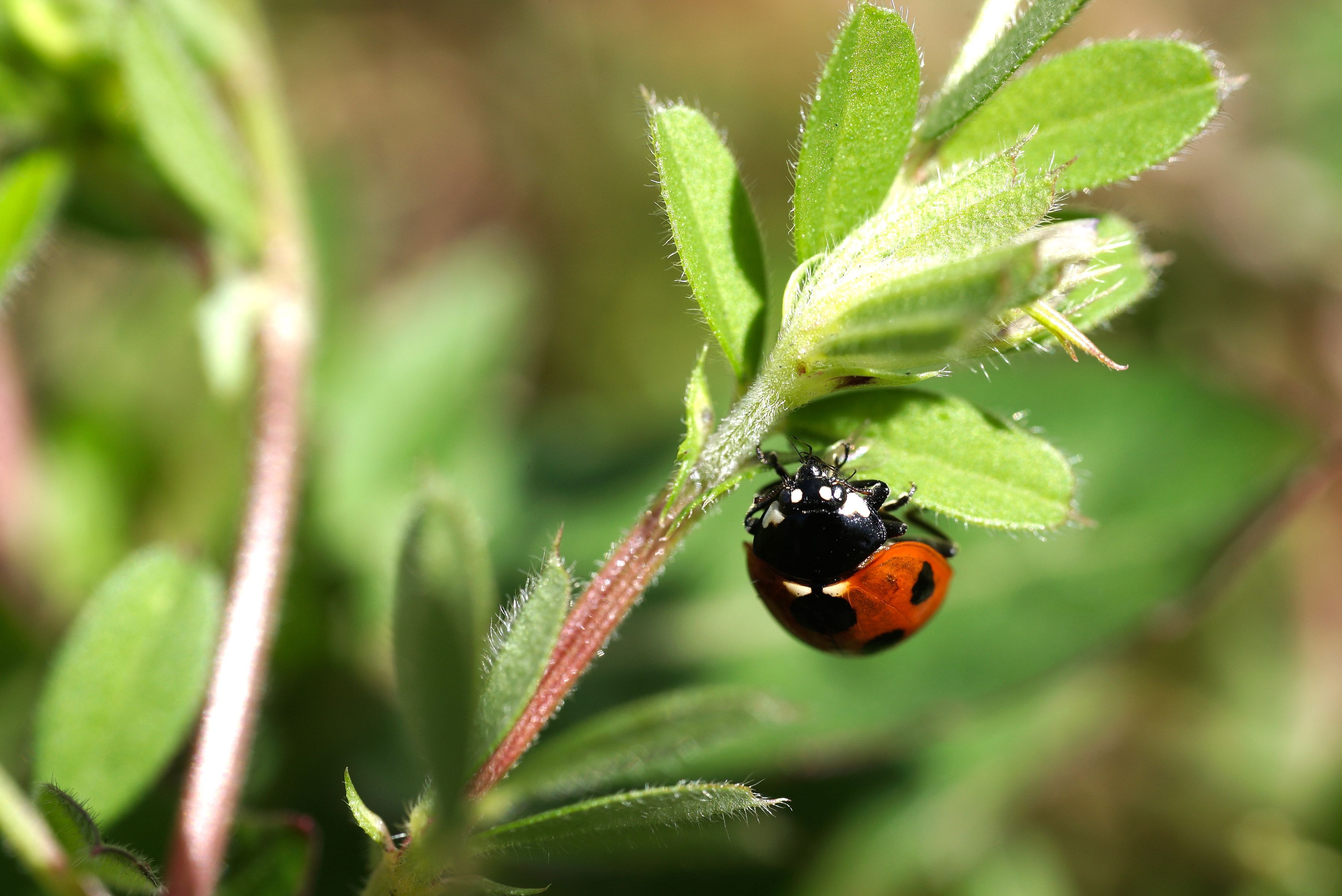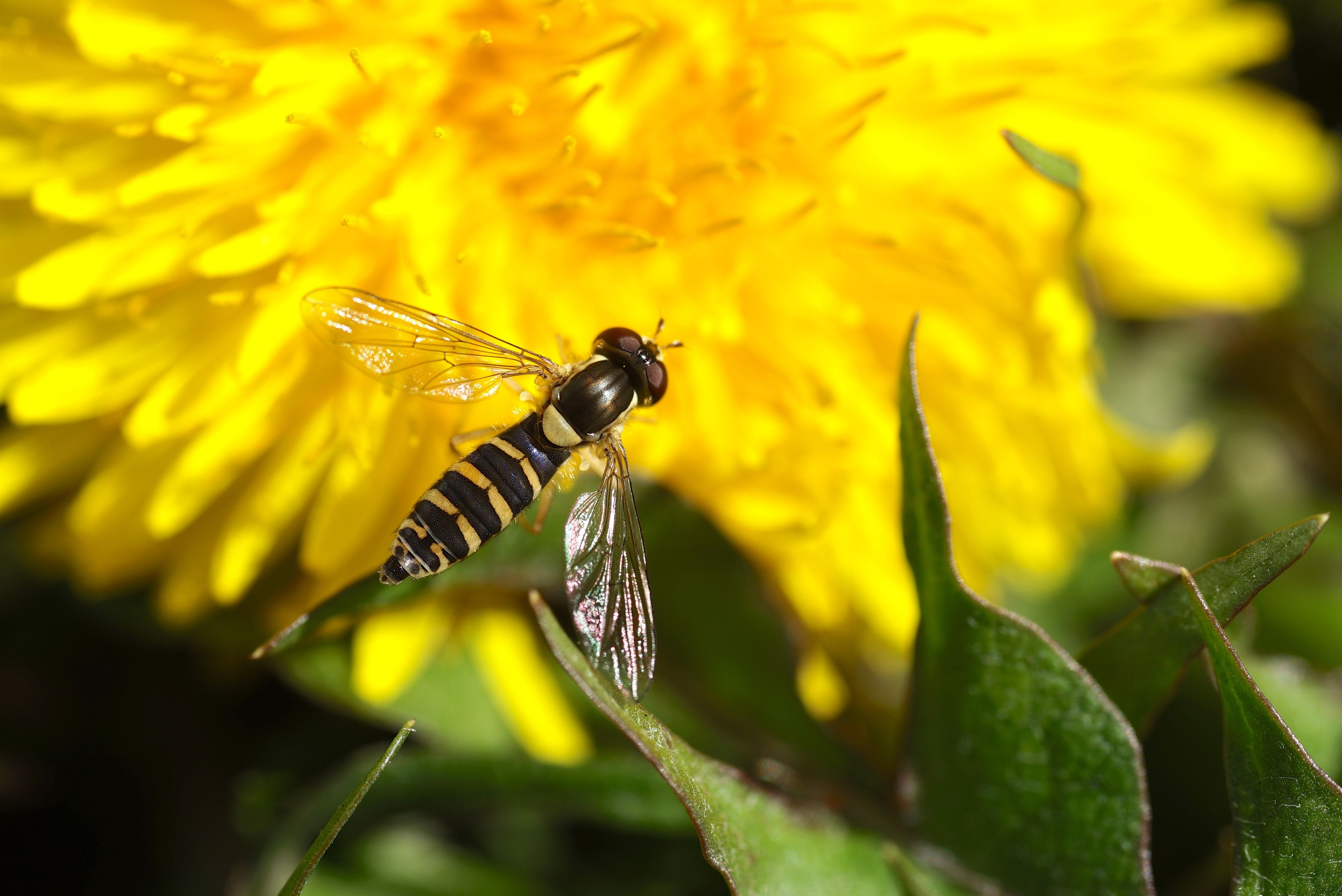 ヒラタアブもテントウムシもお食事中です。ヒラタアブの幼虫はアブラムシを食べるので、アブラムシが居るところにはヒラタアブとテントウムシが一緒にいつことが多いです。 SIGMA 70mm EX DG MACRO使用。等倍撮影です。