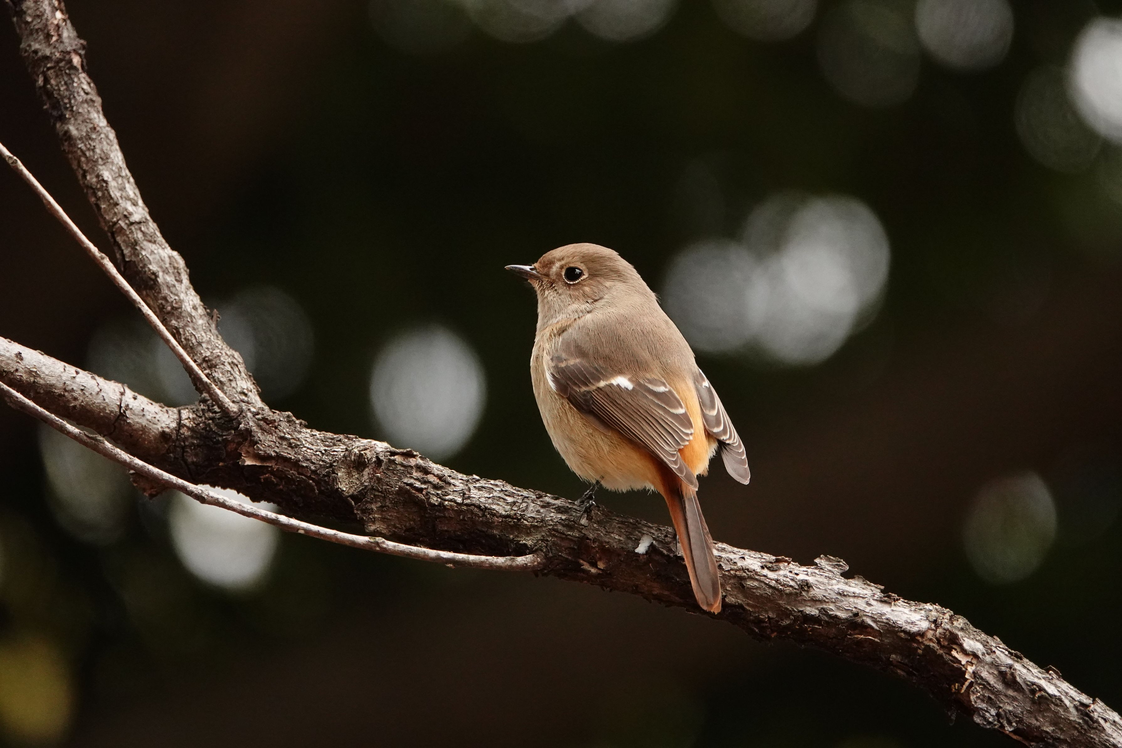 一羽のジョウビタキが、地面の虫を探しながら、枝々を飛び回っていました。 疲れたのか、お腹がいっぱいになったのか、チョット一休みしていました。