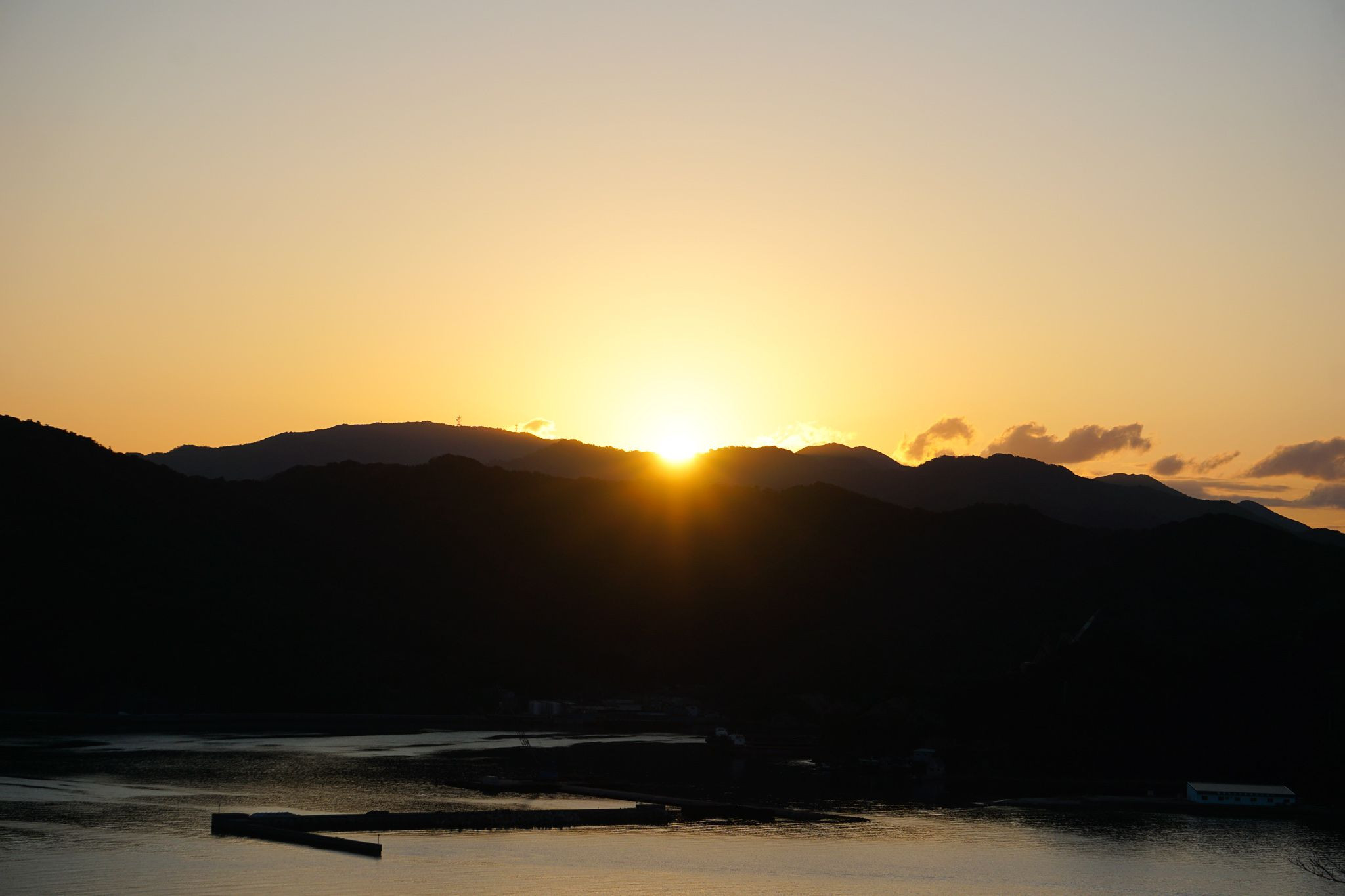 休暇村南淡路から望む日の出です。寒さに耐えてじっとその時を待ちました。