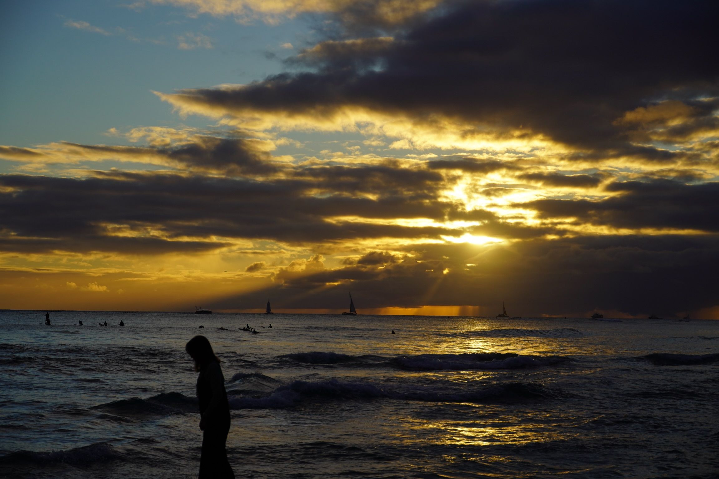 旅行に行った際、ワイキキビーチでの夕焼けを撮りました。 海と空のコントラストが素晴らしかったです。