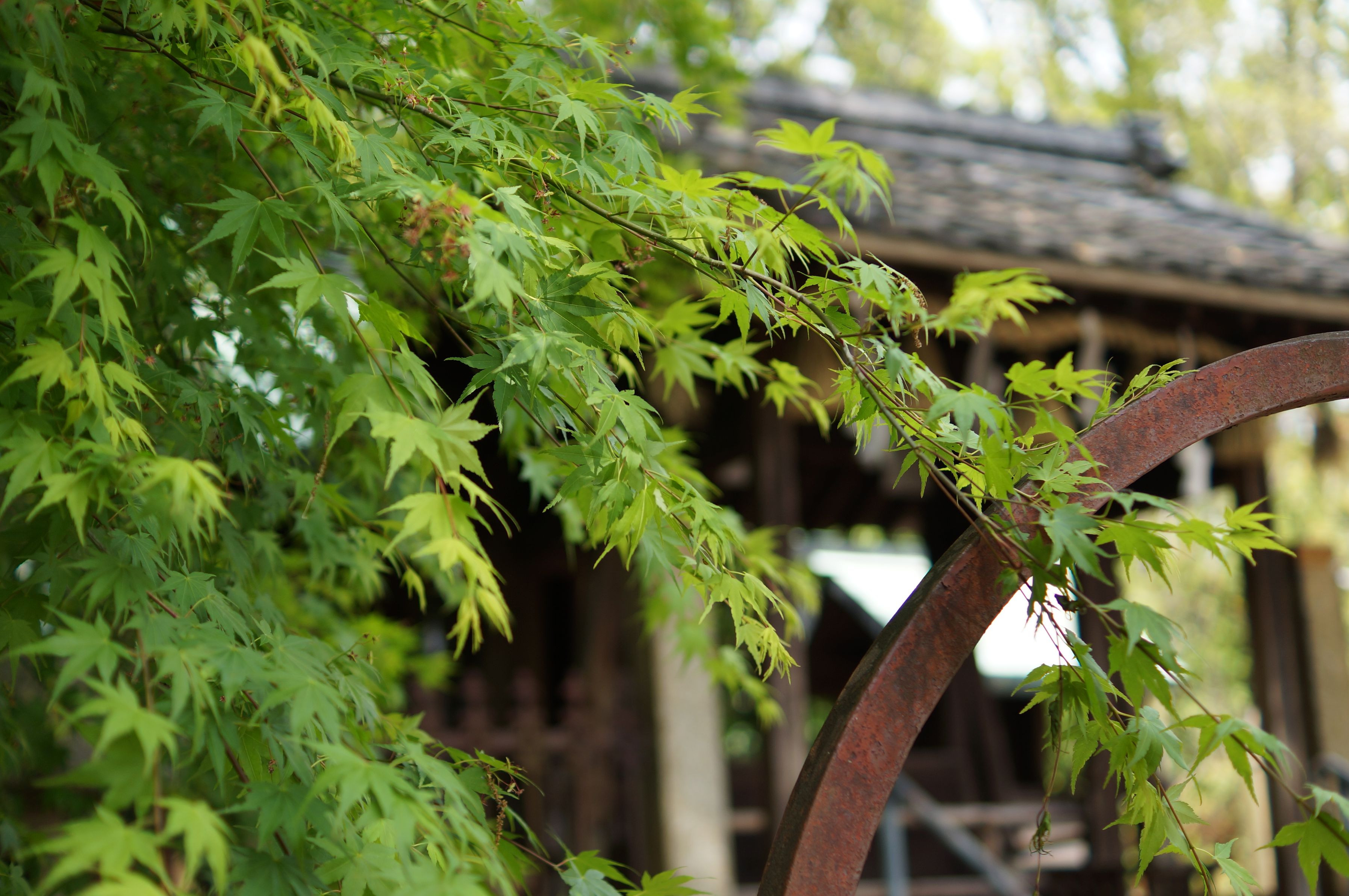 季節外れの写真ですが、気に入っているので投稿しました。近所の神社のショットですが、若葉と老いていく鉄柱のコントラストが気に入っています。今は亡きα57にて撮りました。