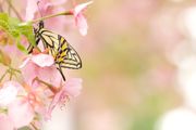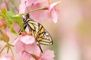 雨の日の一条戻り橋 河津桜 アゲハチョウの先客が隠れていました