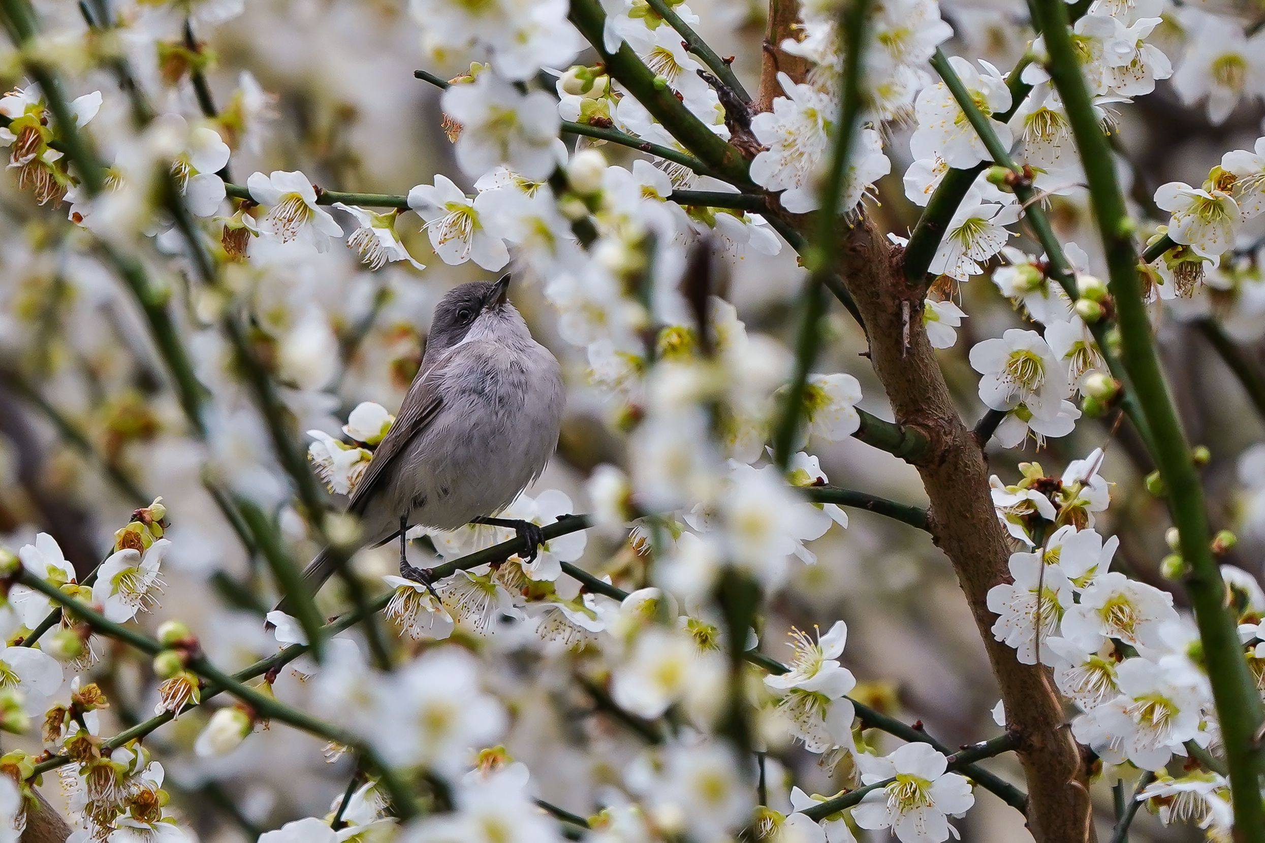 製品情報>My Sony>αcafe>紅白梅と小喉白虫食(コノドジロムシクイ) 希少種(CHELSKYさん)