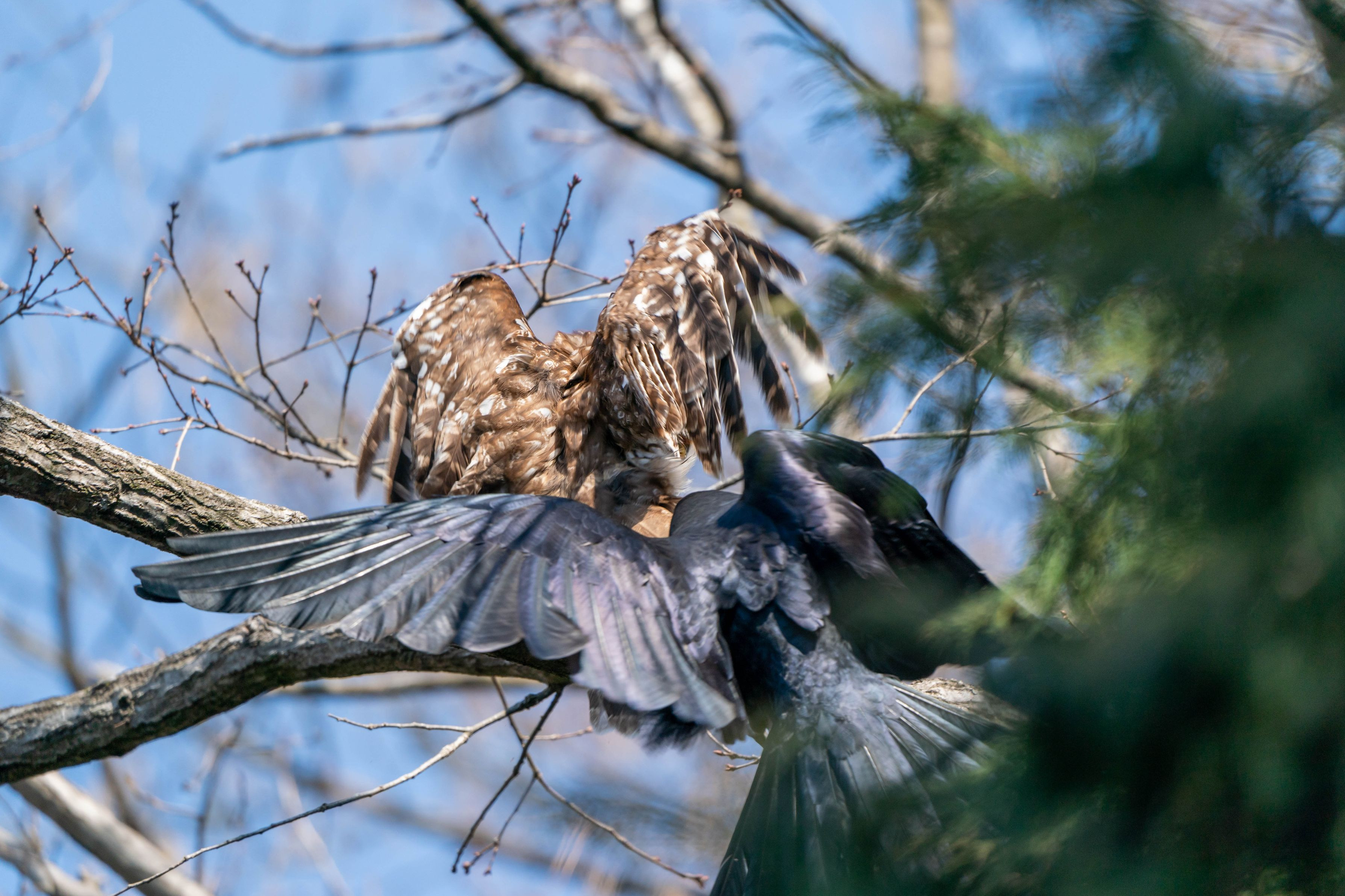 はじめてのフクロウとの出会いは カラスとのバトルだった カラスの鳴き声に見上げると フクロウが… 慌ててシャッターを切った