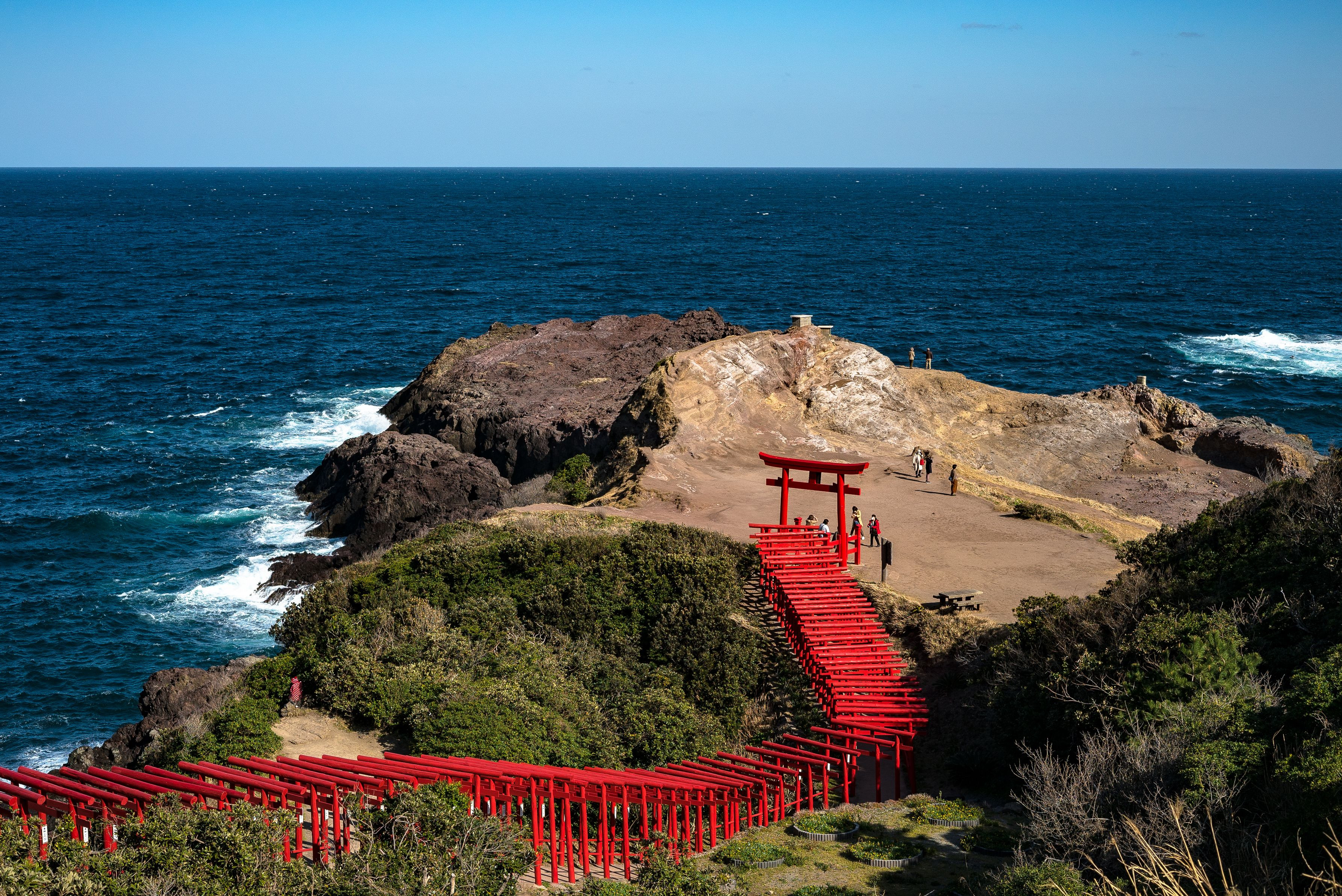 123基の鳥居の向こうには 断崖絶壁の景色。 たくさんの観光客で賑わっていました。