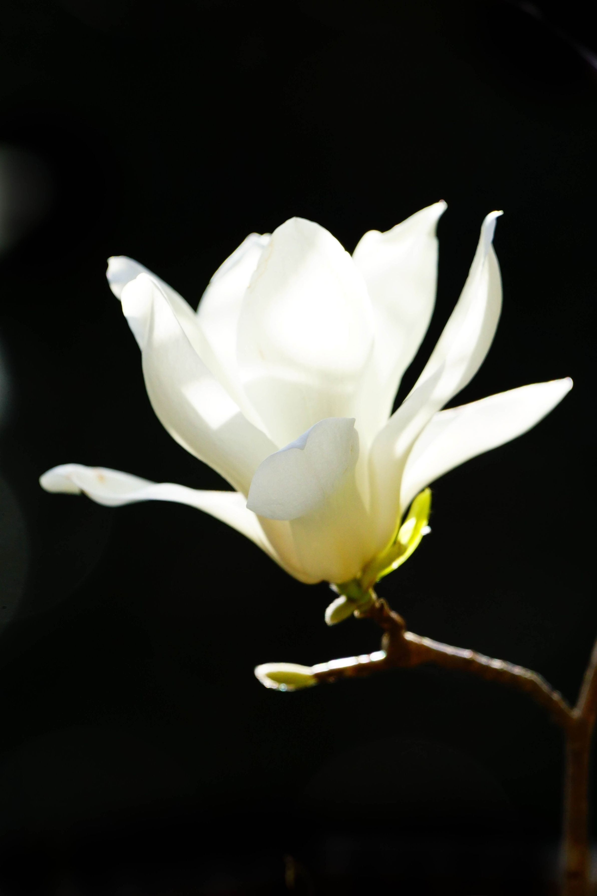 白木蓮が木漏れ日を浴びて暗闇を照らすように輝いていました