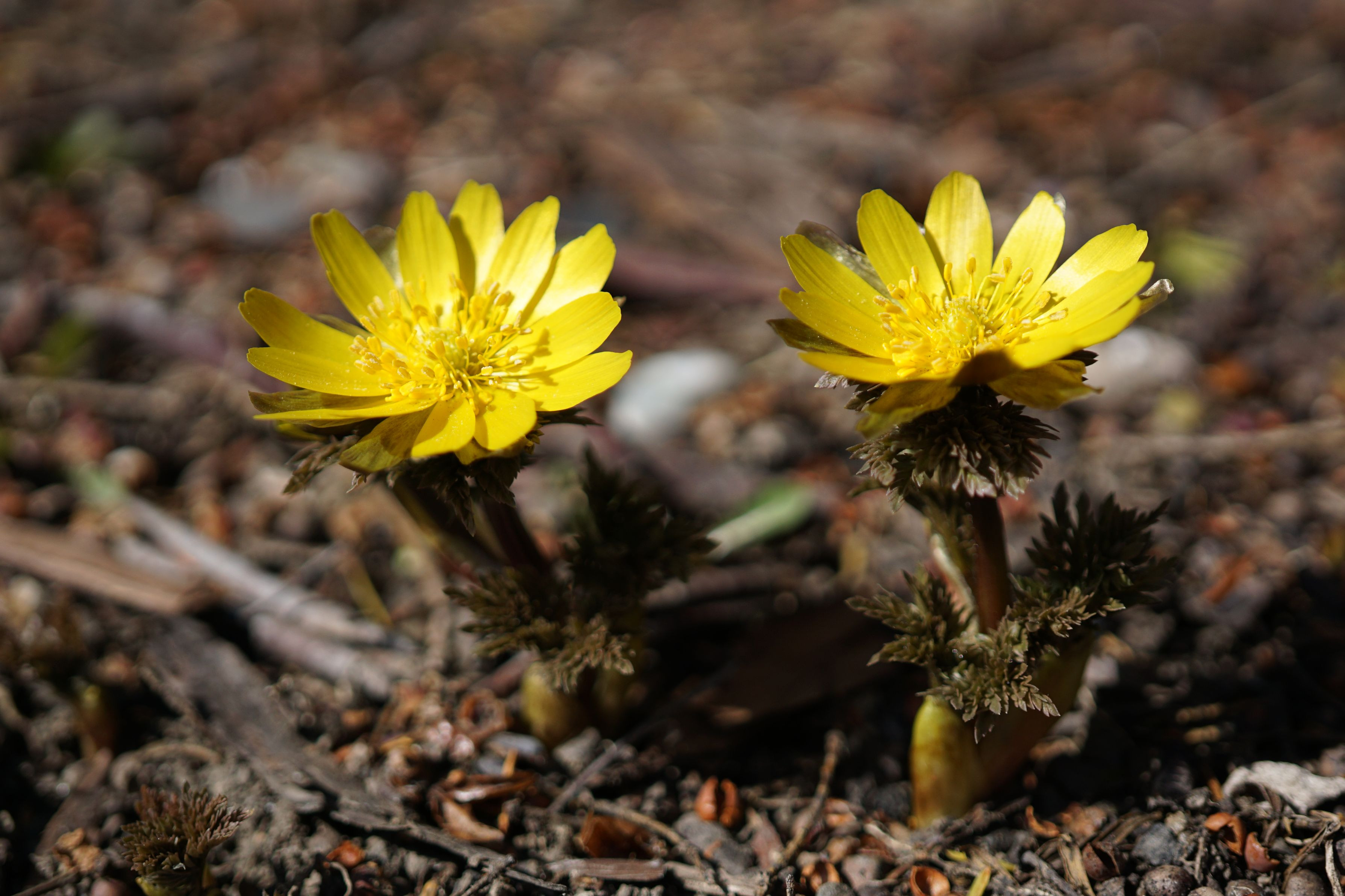 毎年、同じような写真しか撮れないのだけど… 雪が解けて、福寿草の花が咲くとうれしくなってカメラを向けます。 今年は、暖冬・少雪でいつもより半月くらい早い開花でした。