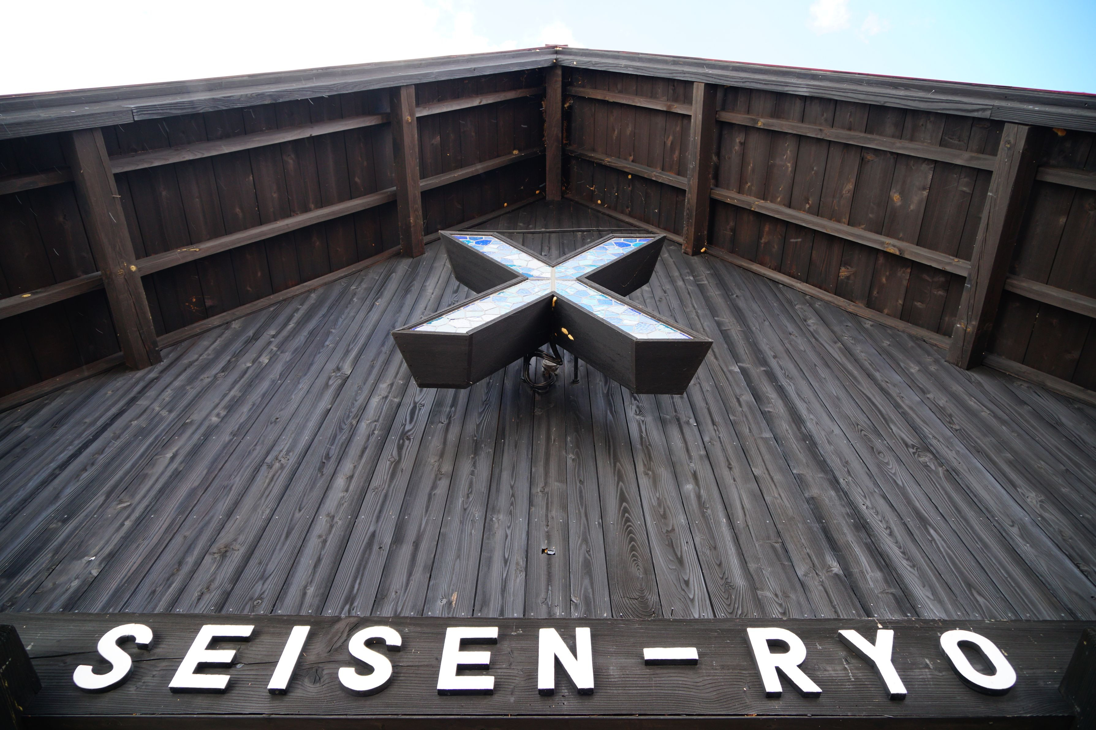 一見デッキに置いてあるテーブルの様ですが、実は清里の清泉寮の壁を下から見上げたところです。デッキのように見えるのは私だけでしょうか。