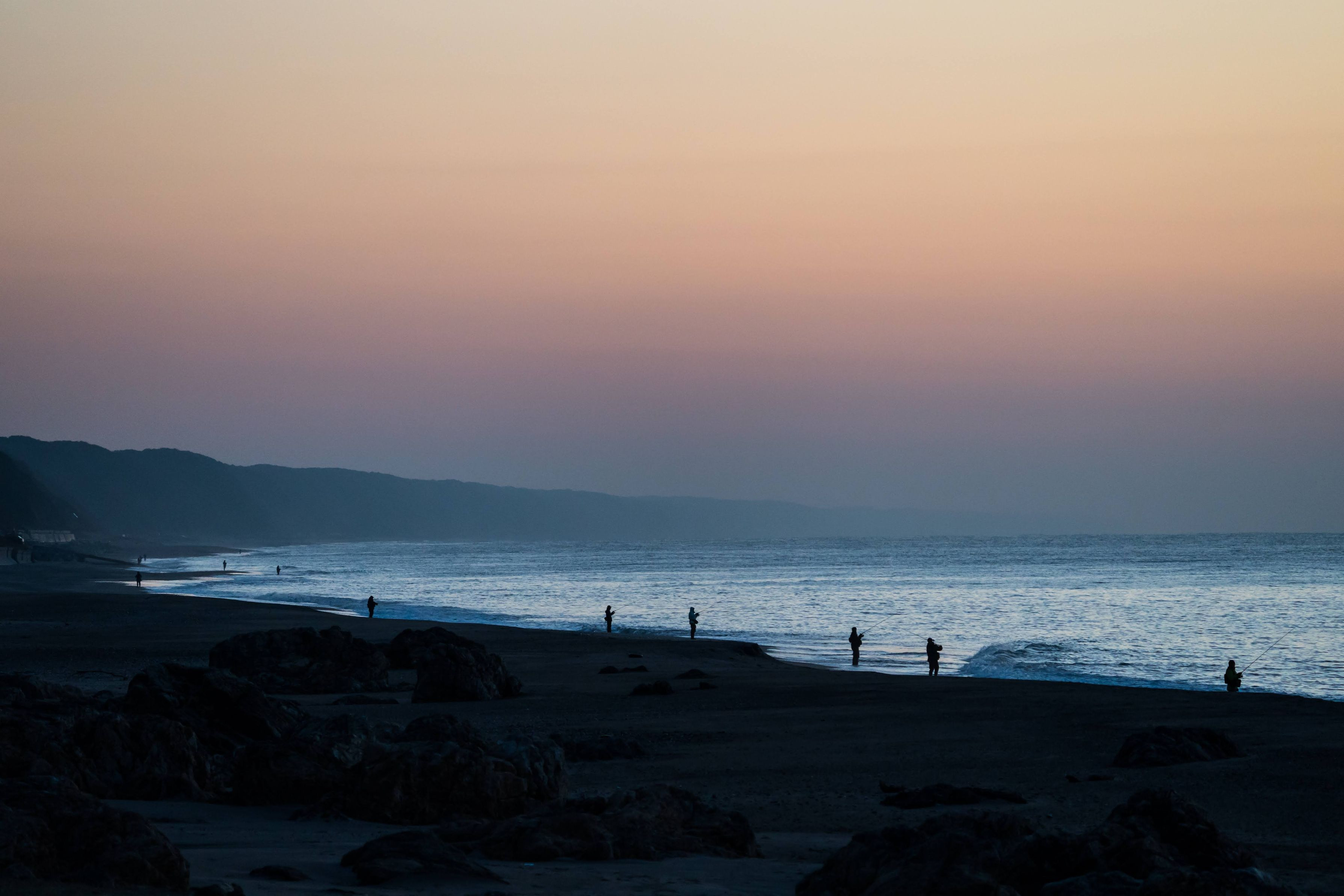 夜明け直前の太平洋 薄明りの中に浮かんできたのは多くの釣り人でした