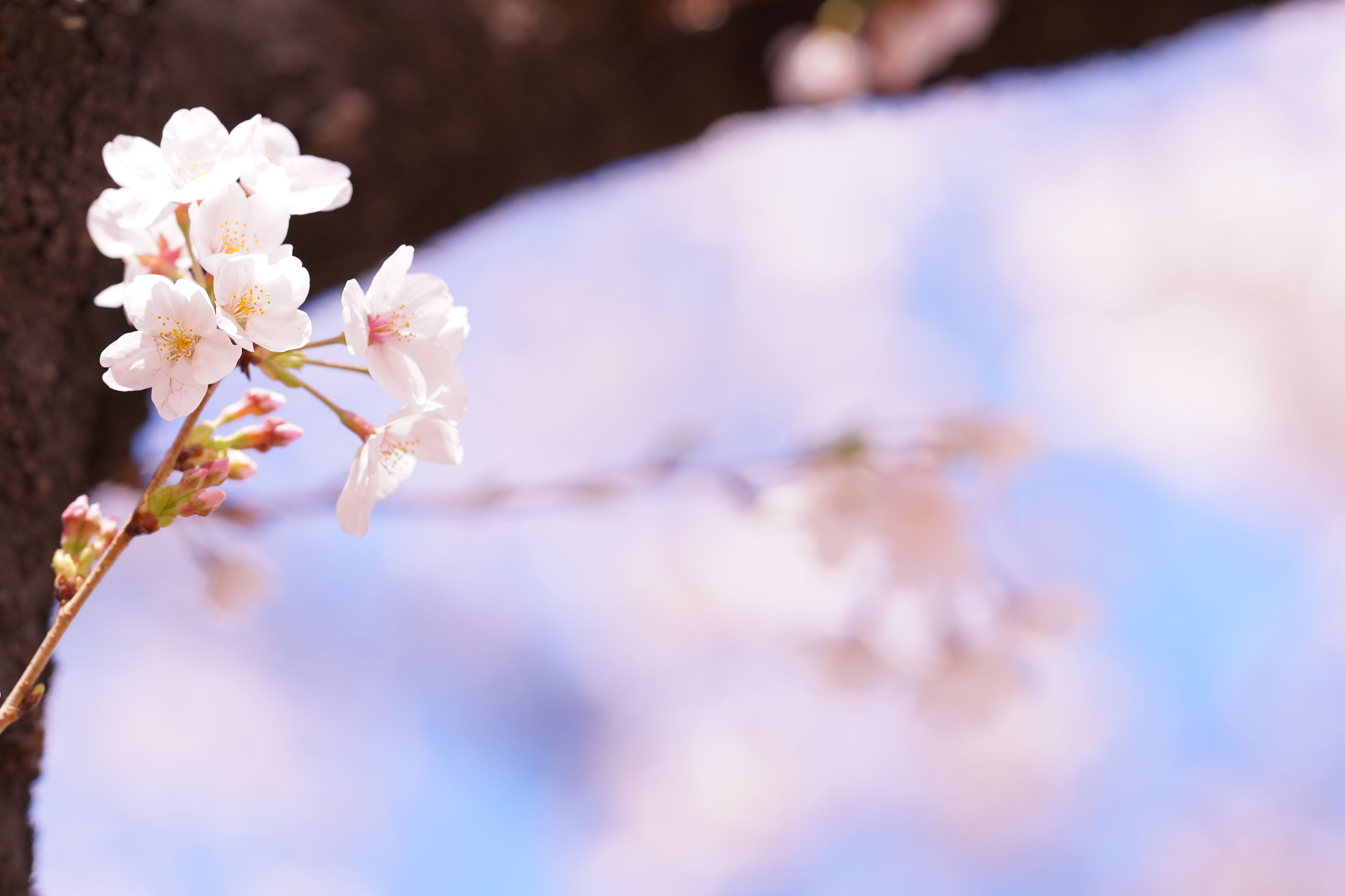 世の中の出来事とは関係なく、青い空に陽射しをあびて咲く桜に、少しだけ明るい気持ちになりました。