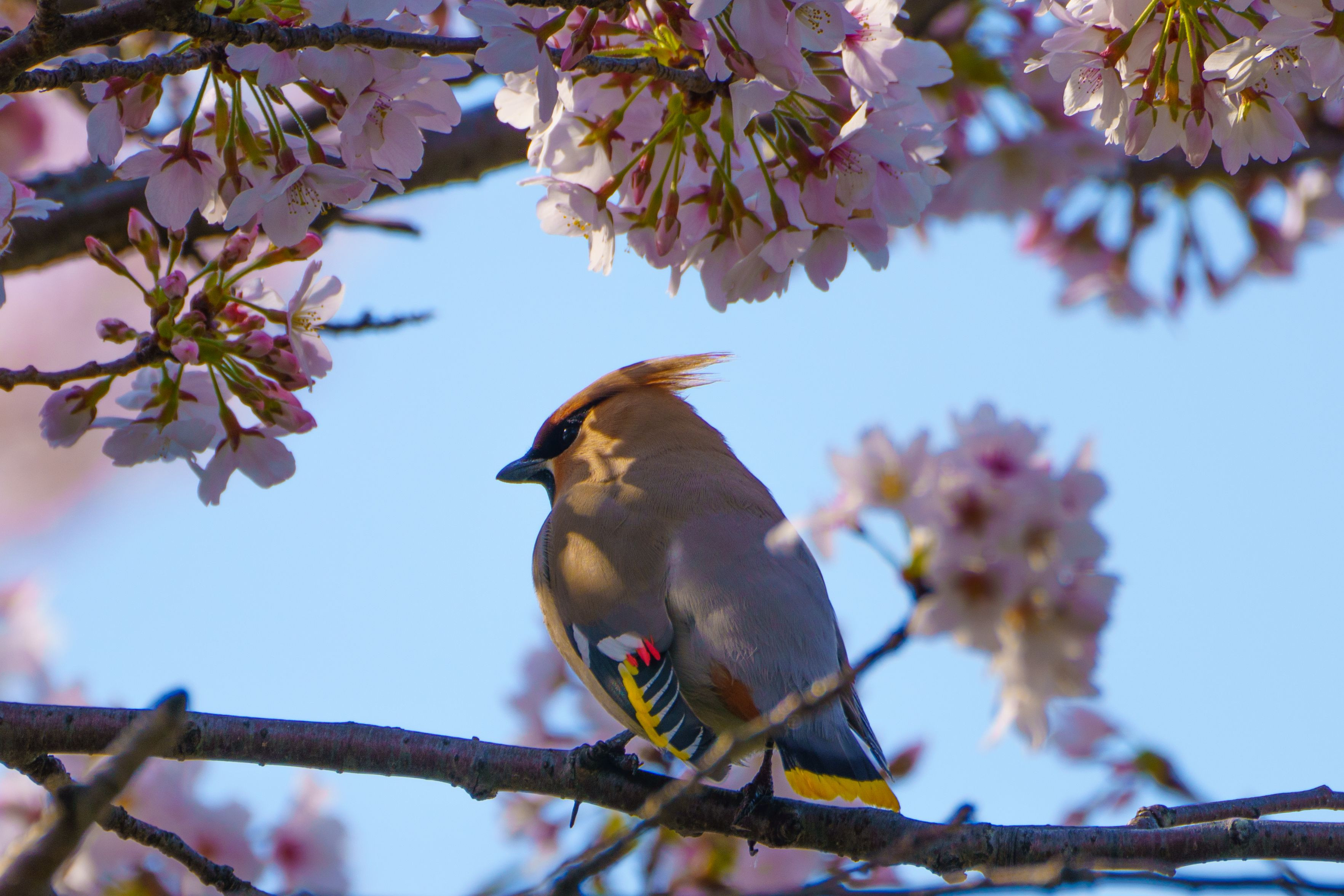 この時期に珍しくキレンジャクです。そろそろ北に帰るはずなので見納めでしょうか。