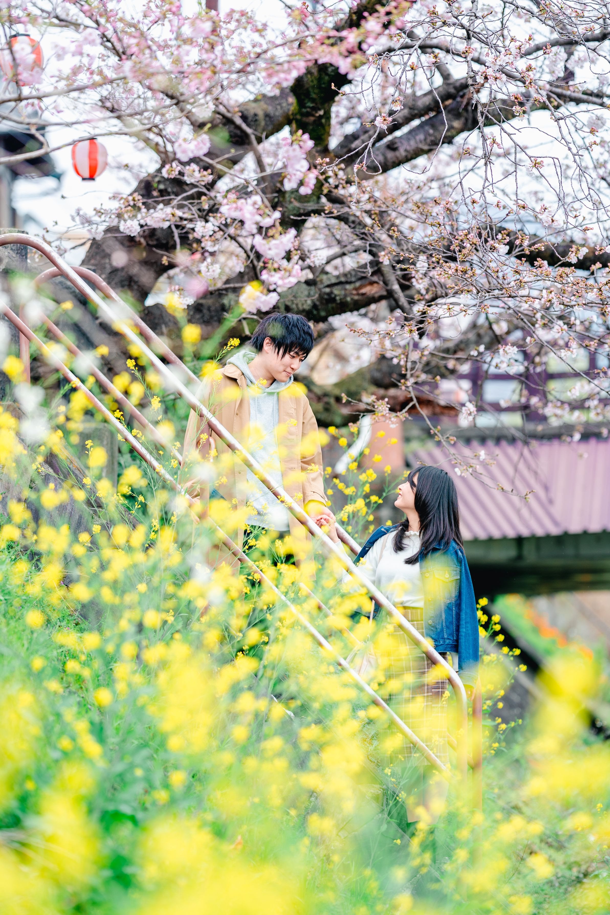 友だちカップルを撮影させてもらいました。 たまたま桜と菜の花が写る箇所を見つけてパシャリ。