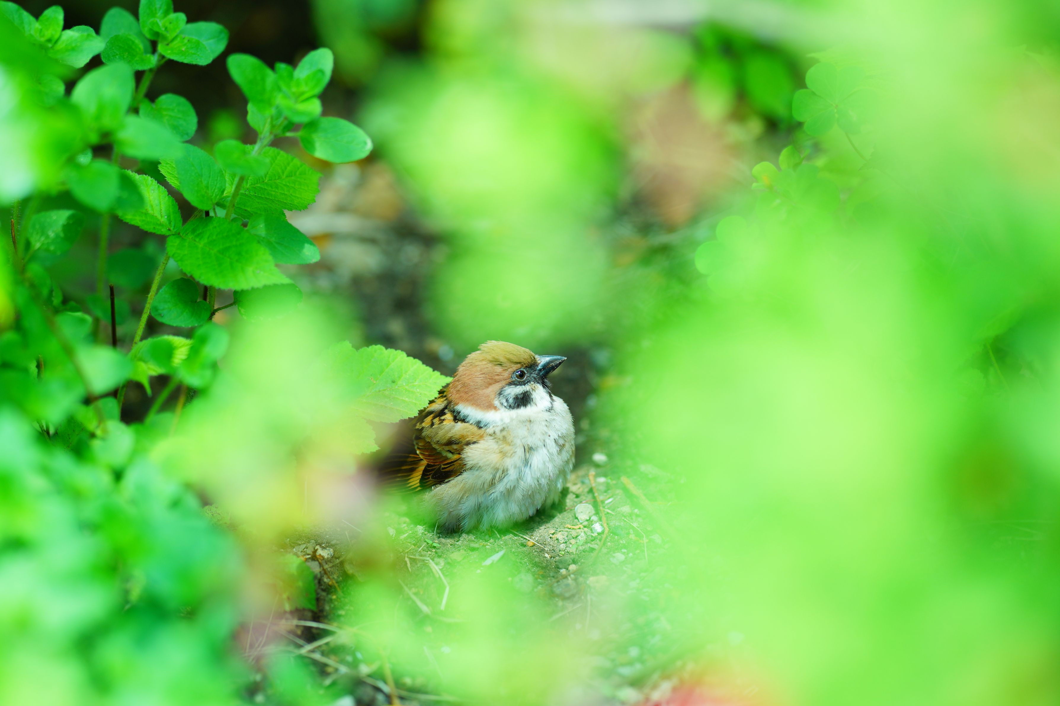 人目を避けて地面でひなたぼっこ中の#スズメ#