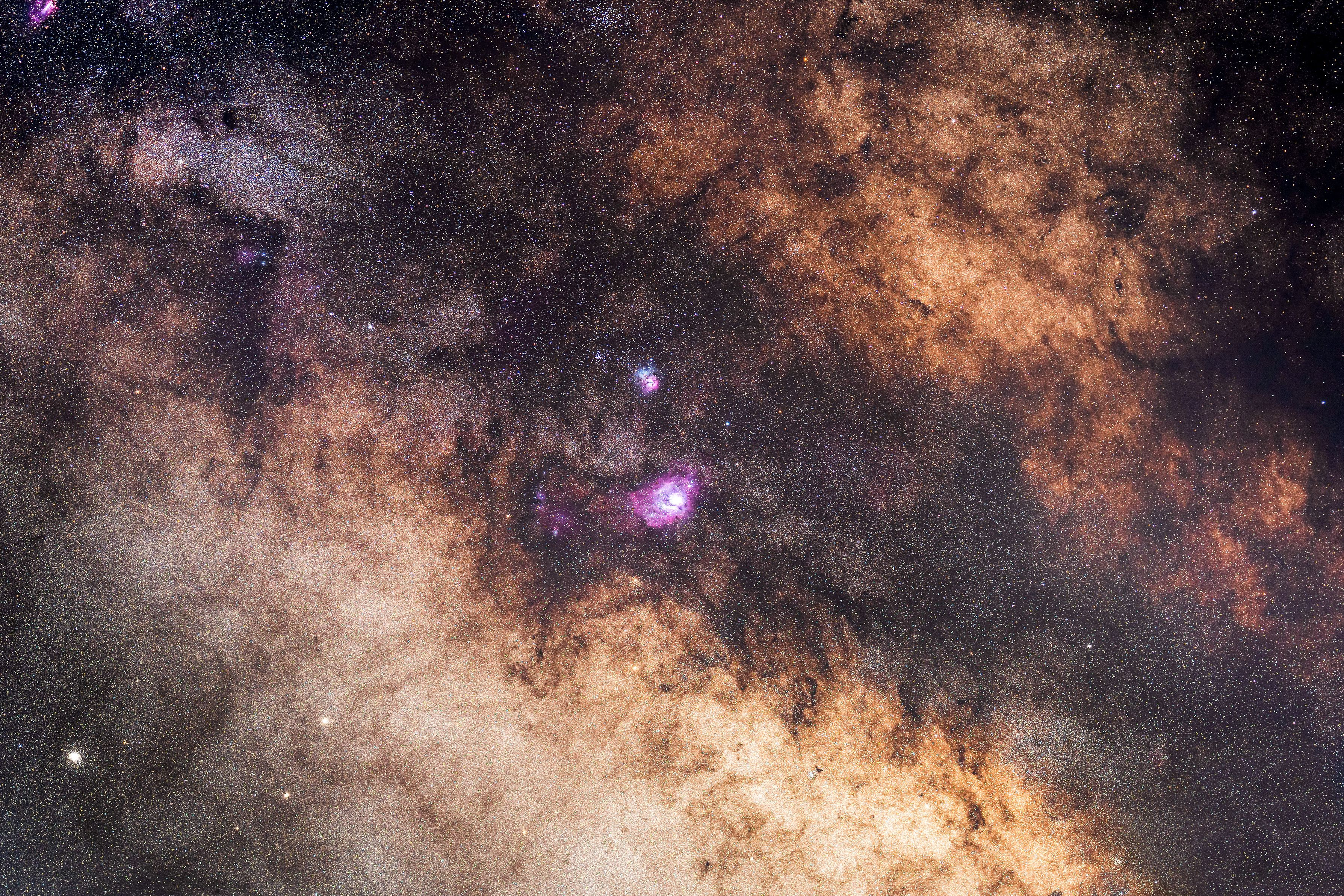 天の川の射手座付近を撮った写真です。この付近は天の川が最も濃く、星団も多く見られます。写真は10枚をphotoshopにてコンポジット合成しています。