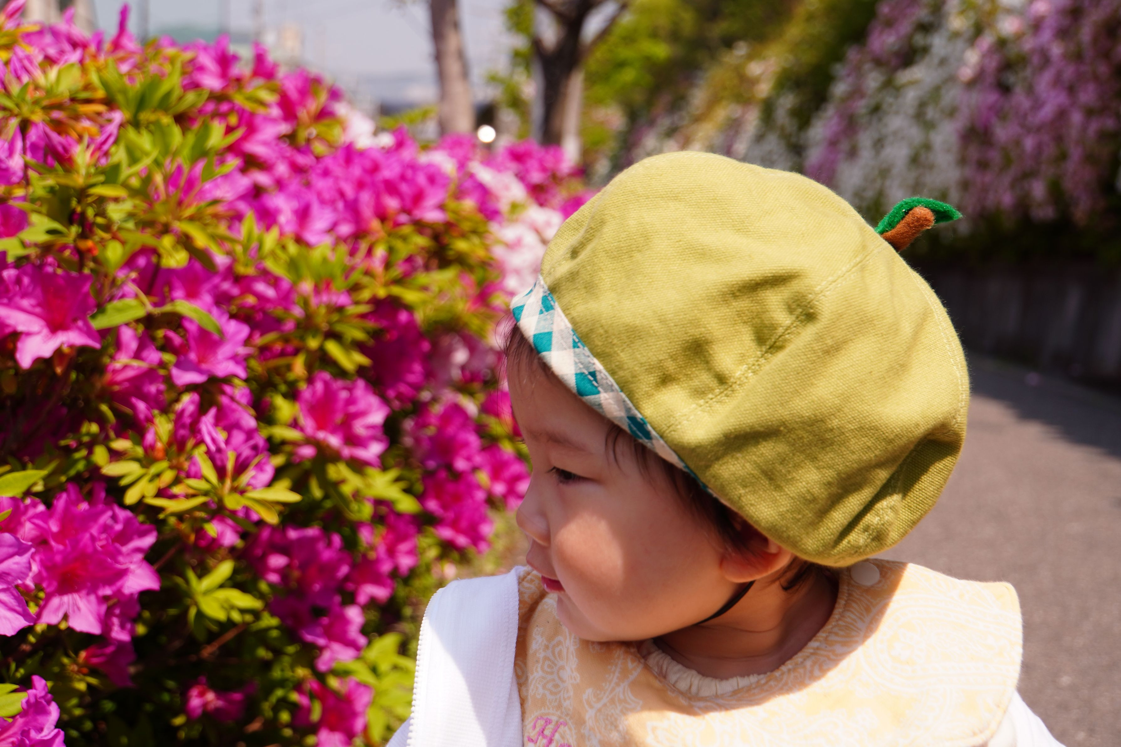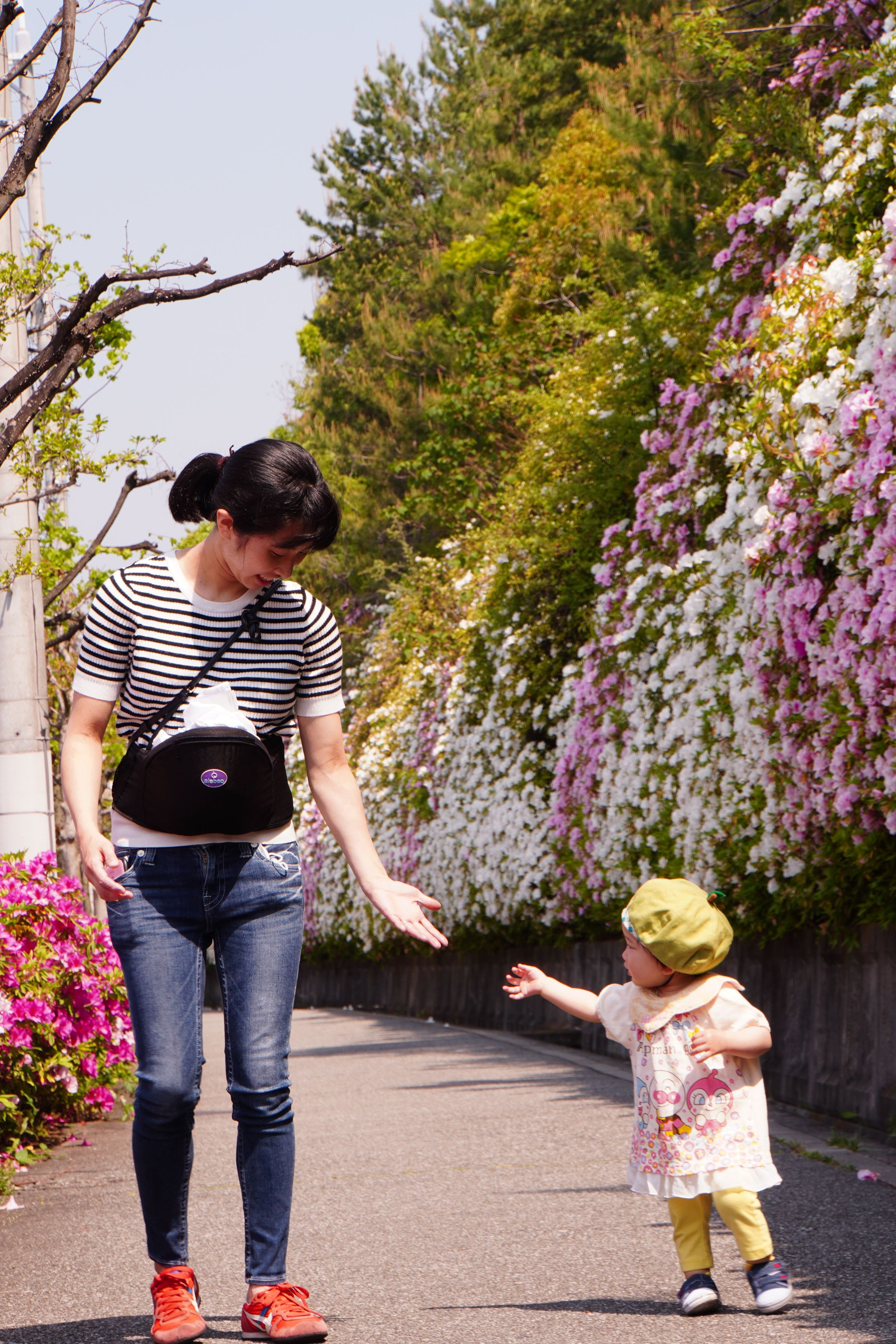 ちゃんと靴をはいて、だいぶ歩けるようになった孫。。。 遠くへ行かなくても、近所の歩道沿いの満開のツツジを見にお散歩です。