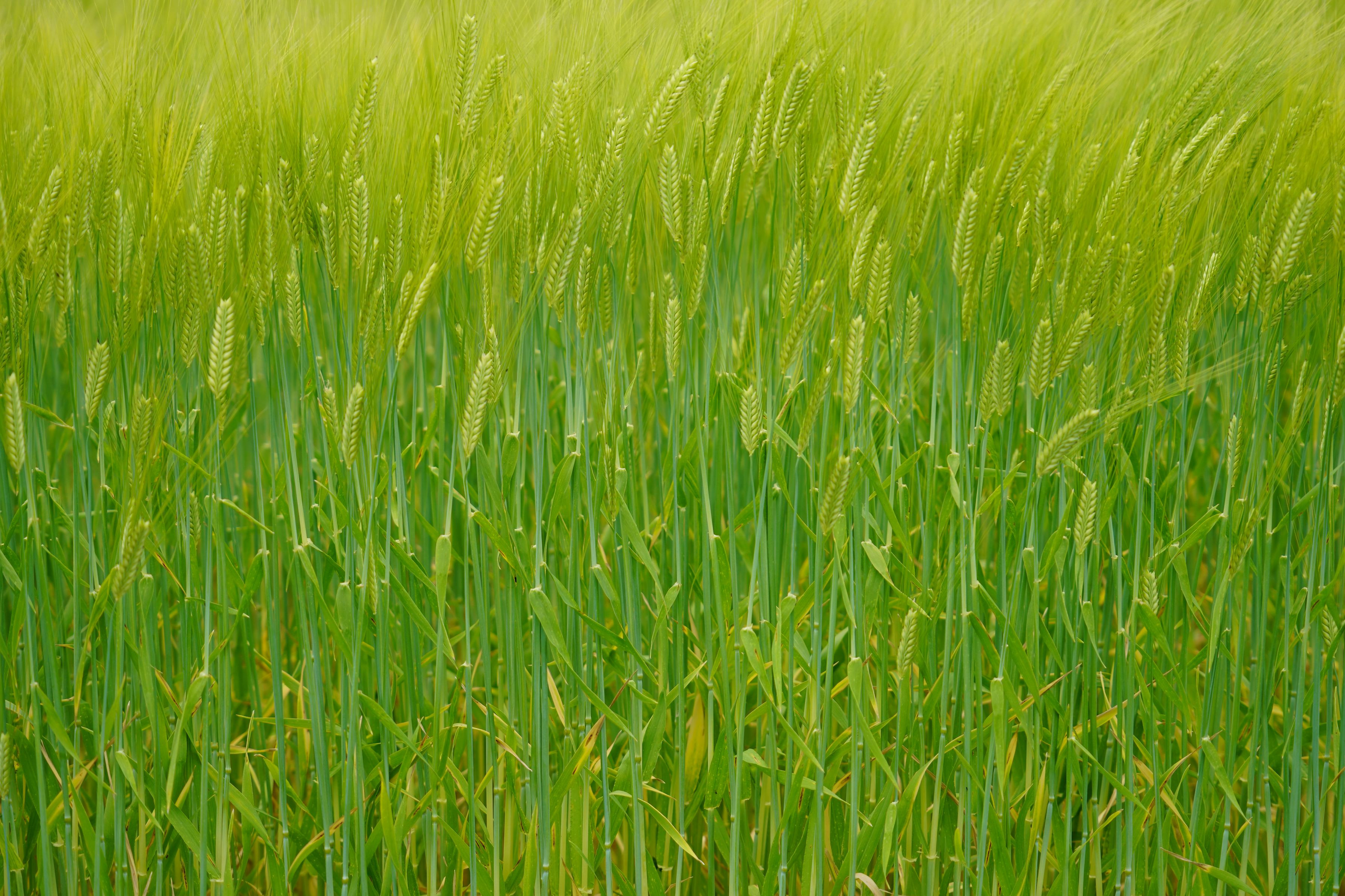 近所の散歩途中、麦畑を撮影。 綺麗な”きみどり”色でした。