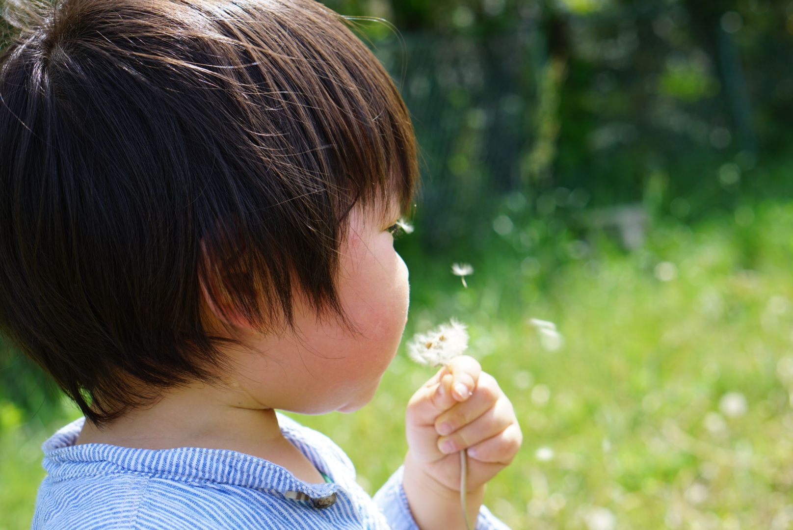 タンポポの綿毛を飛ばす事を覚えた2歳児 成長の記念になる写真が撮れました