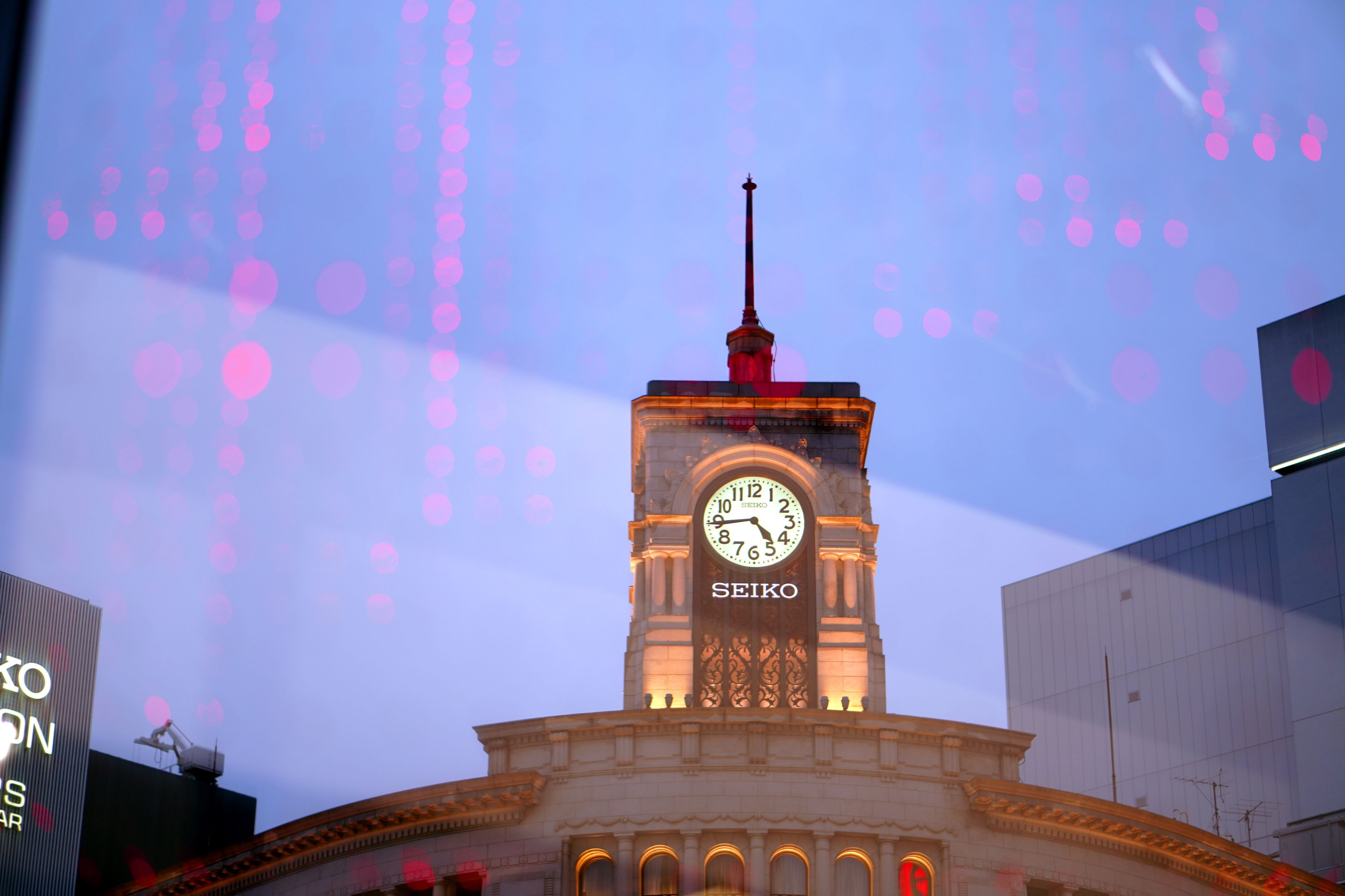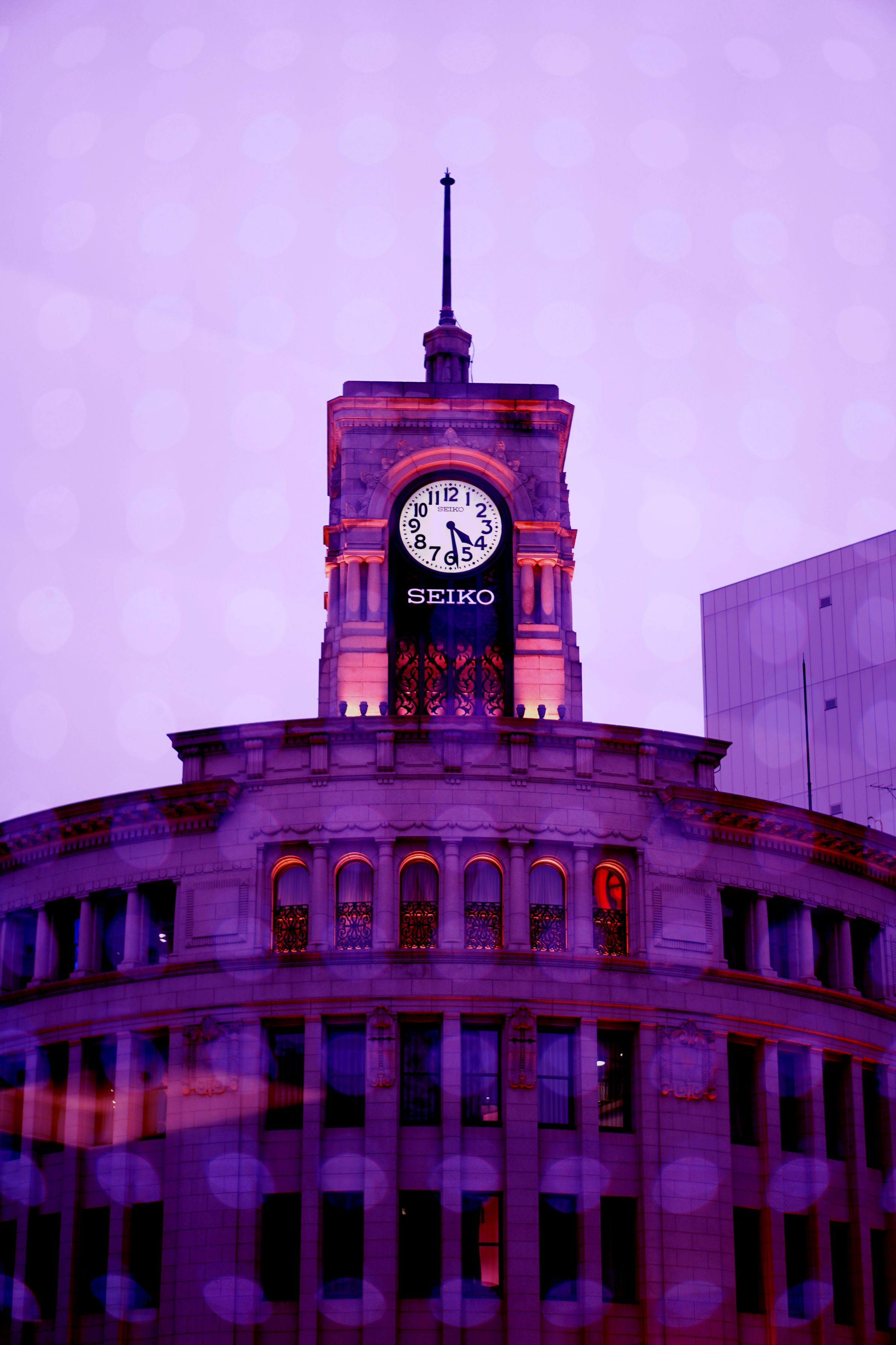巣ごもり、 データの断捨離作業、少しづつ進んでいます。 昨年12月のセミナーの時間待ち、日産のウィンドーから撮った雨の銀座。 ウィンドーガラスに色を変えながら円形の灯りの列が点滅していたので 利用して遊んでみました。 円が目立つうように調整しました。
