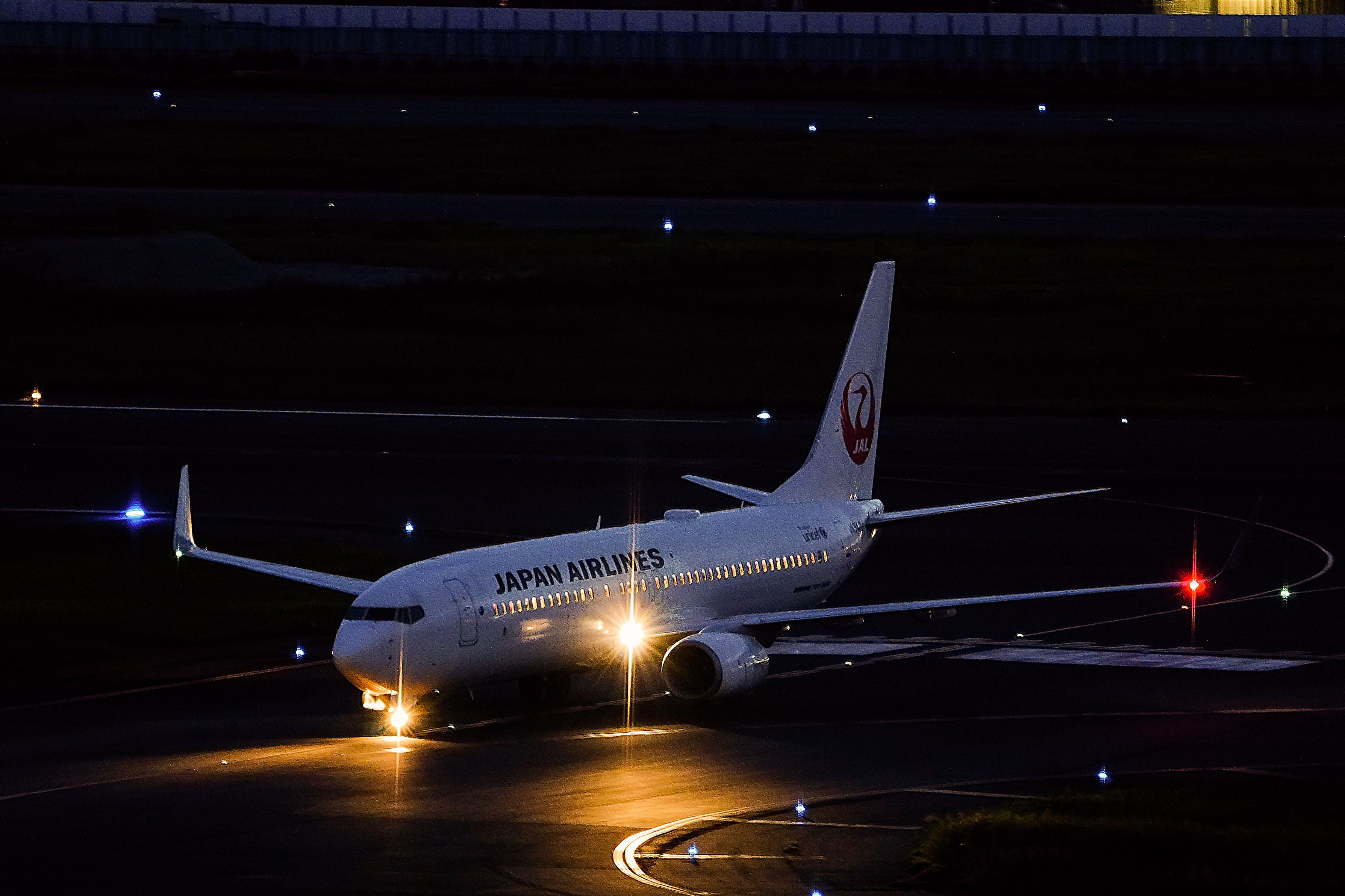 夜の入り口機体のライトが優しくともりました。