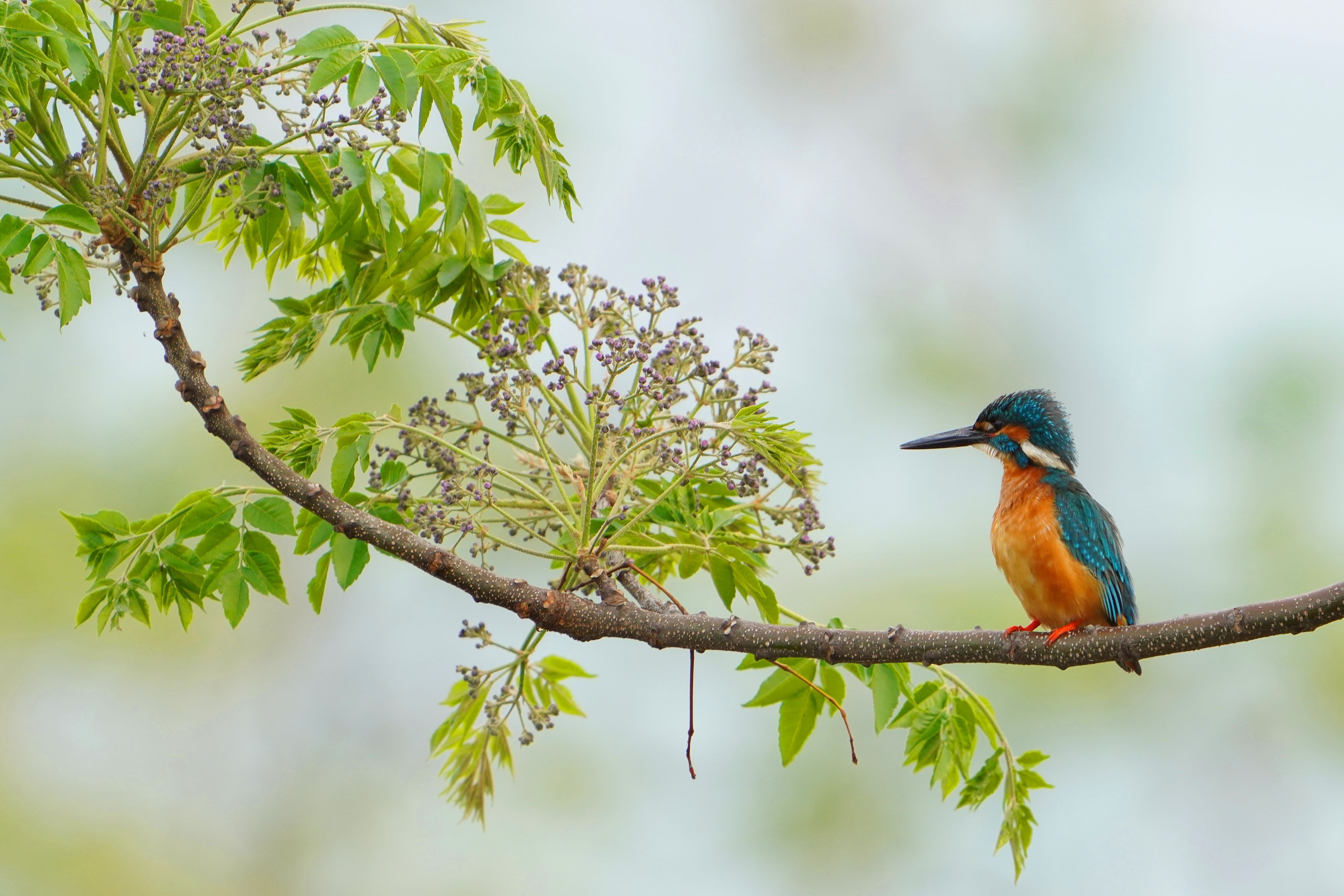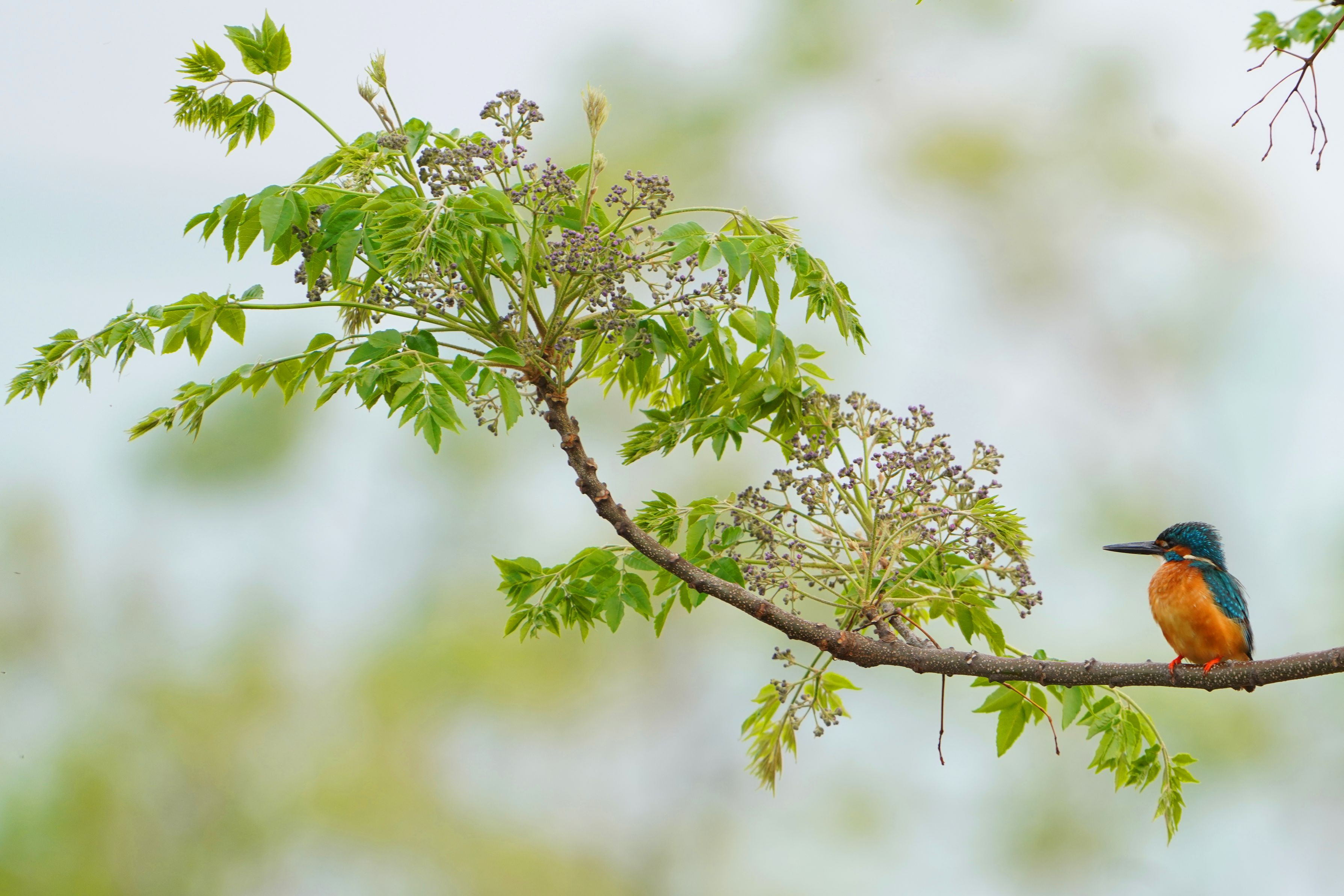 5月初旬から、淀川沿いにある溜め池でも撮影しています。 雄雌ペアで子育て中です。 有難いことに水際は、栴檀、野茨、黄菖蒲?が今咲いています。 これを肴に撮っています。