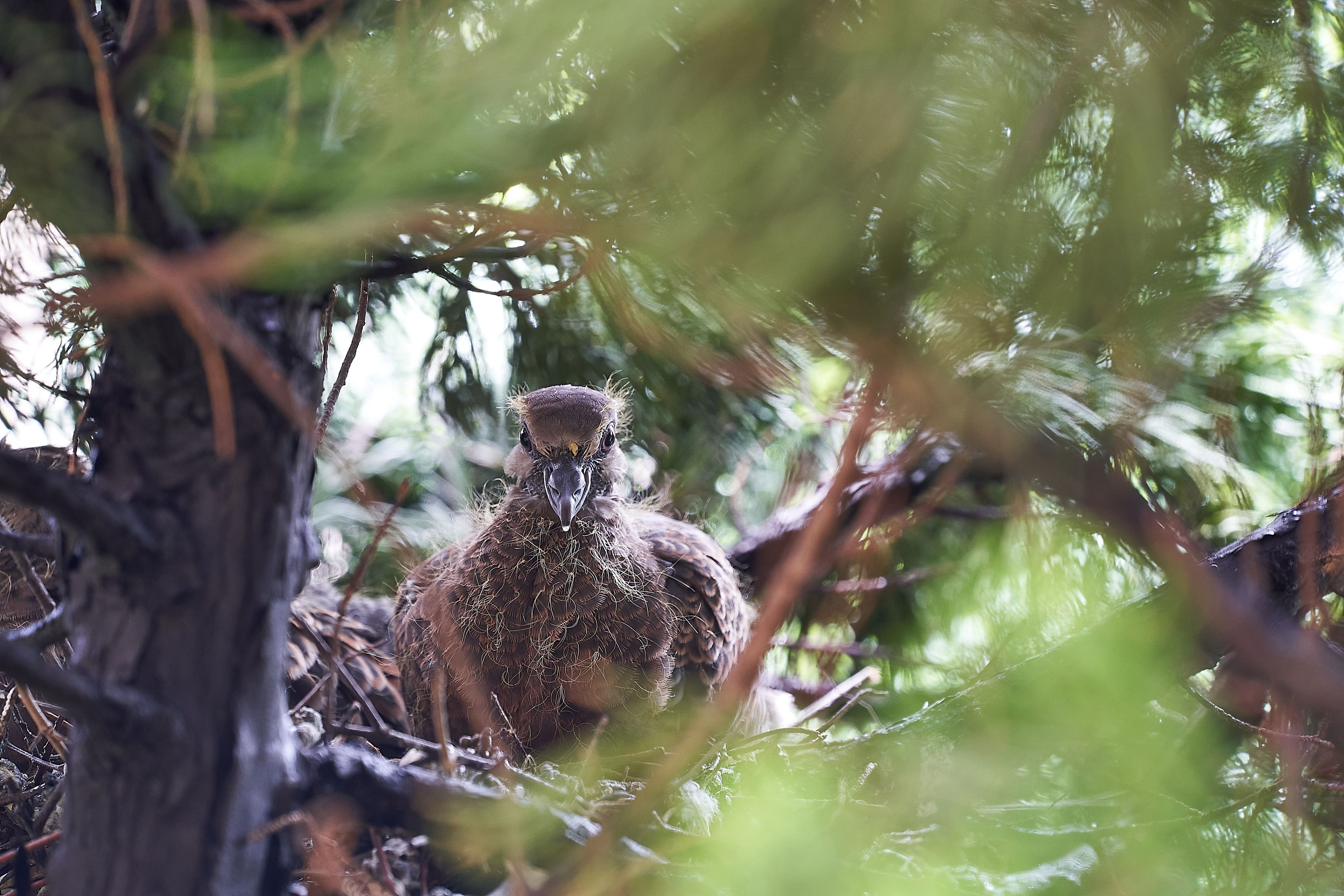 #キジバト# こちらを警戒しているようで、正面を向くと、とても精悍な顔つきです。 もう大丈夫。一人でやっていけるよ!って言ってる見たいでした。 明日の早朝羽ばたく予感がするので、早起きして観察しようと思います。