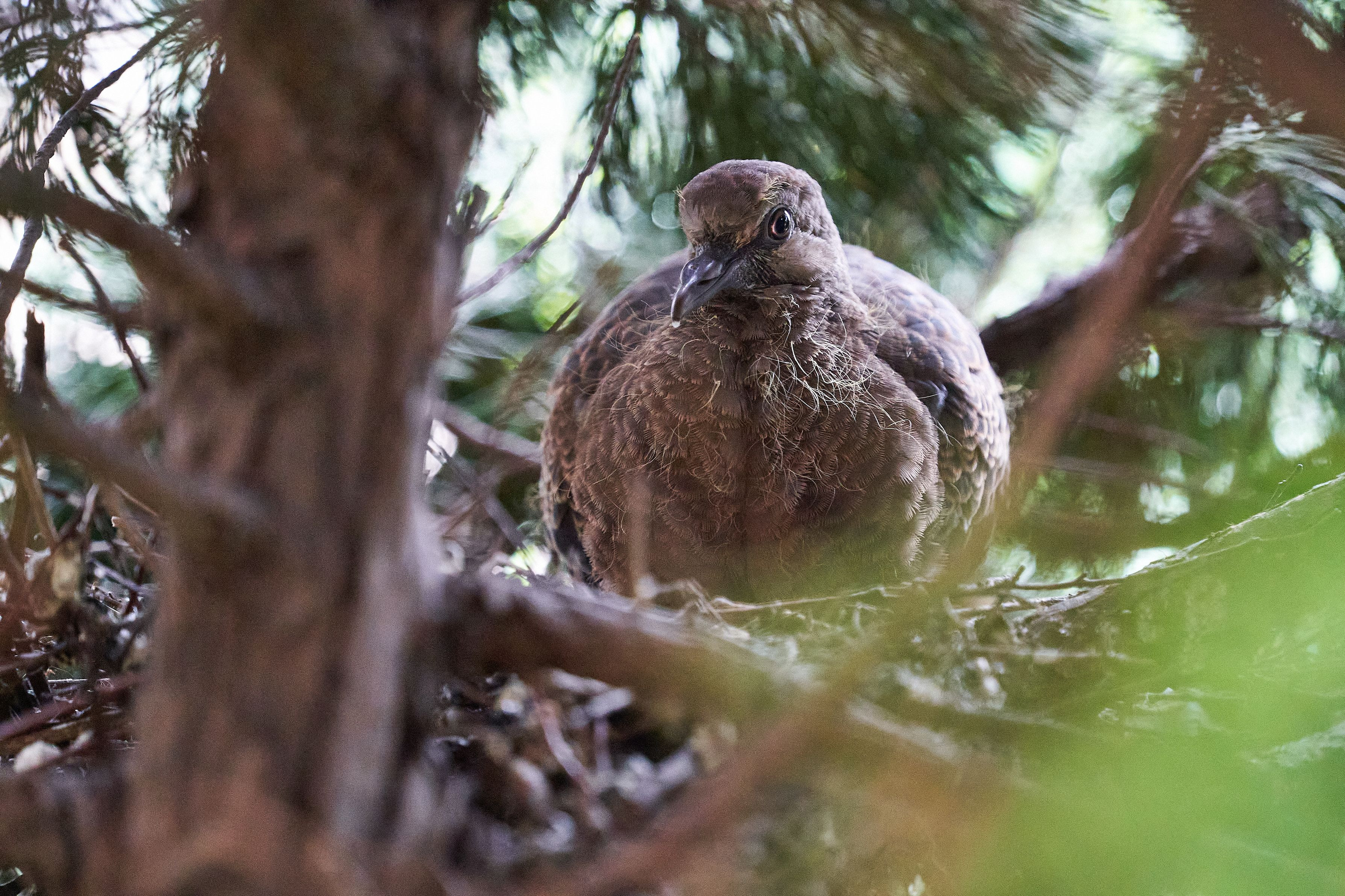 #キジバト#のヒナ 5月26日朝、仕事に行く前に撮りました。 いよいよ今日は巣立つと思いましたが、朝親が餌をやった後も巣の周りにたたずんでました。 仕事から戻ると、いなくなってましたので、無事巣立ったものと思われます。 巣立つとちょっぴり寂しいものですね。