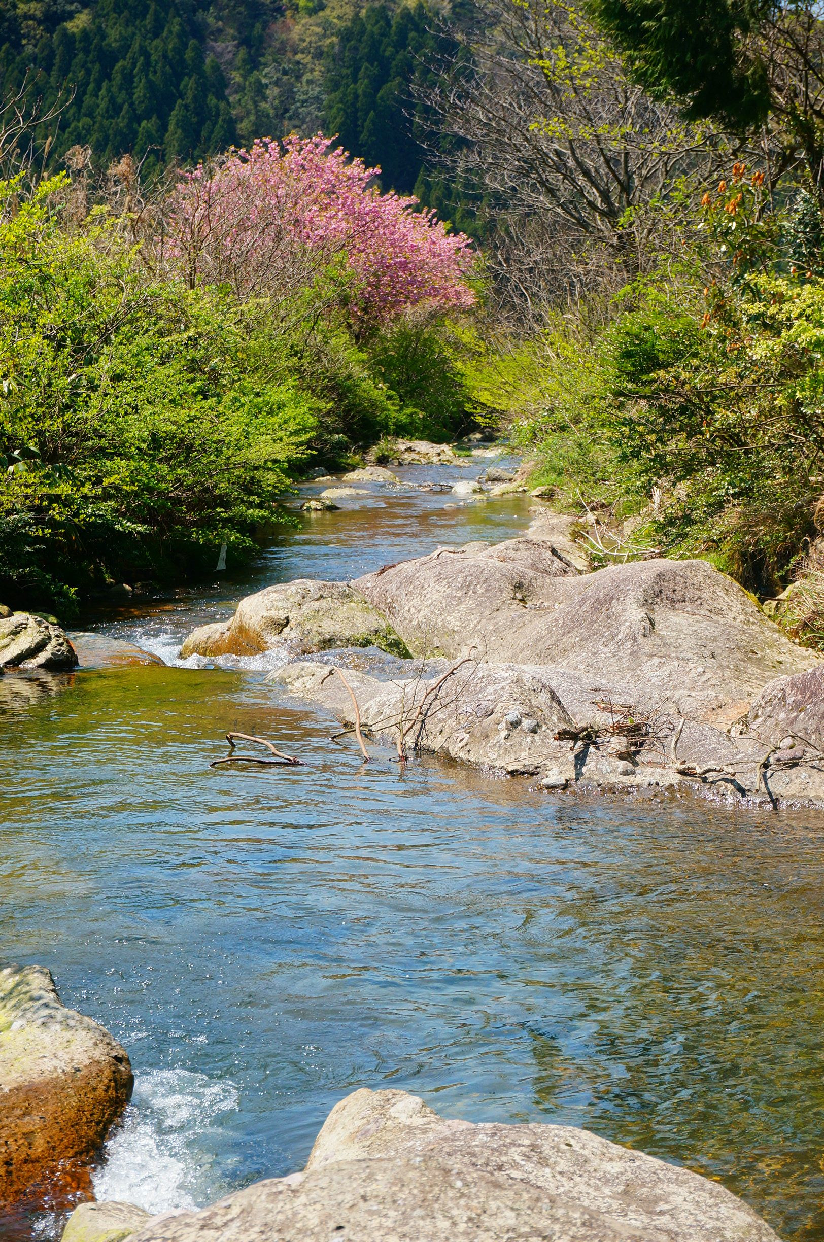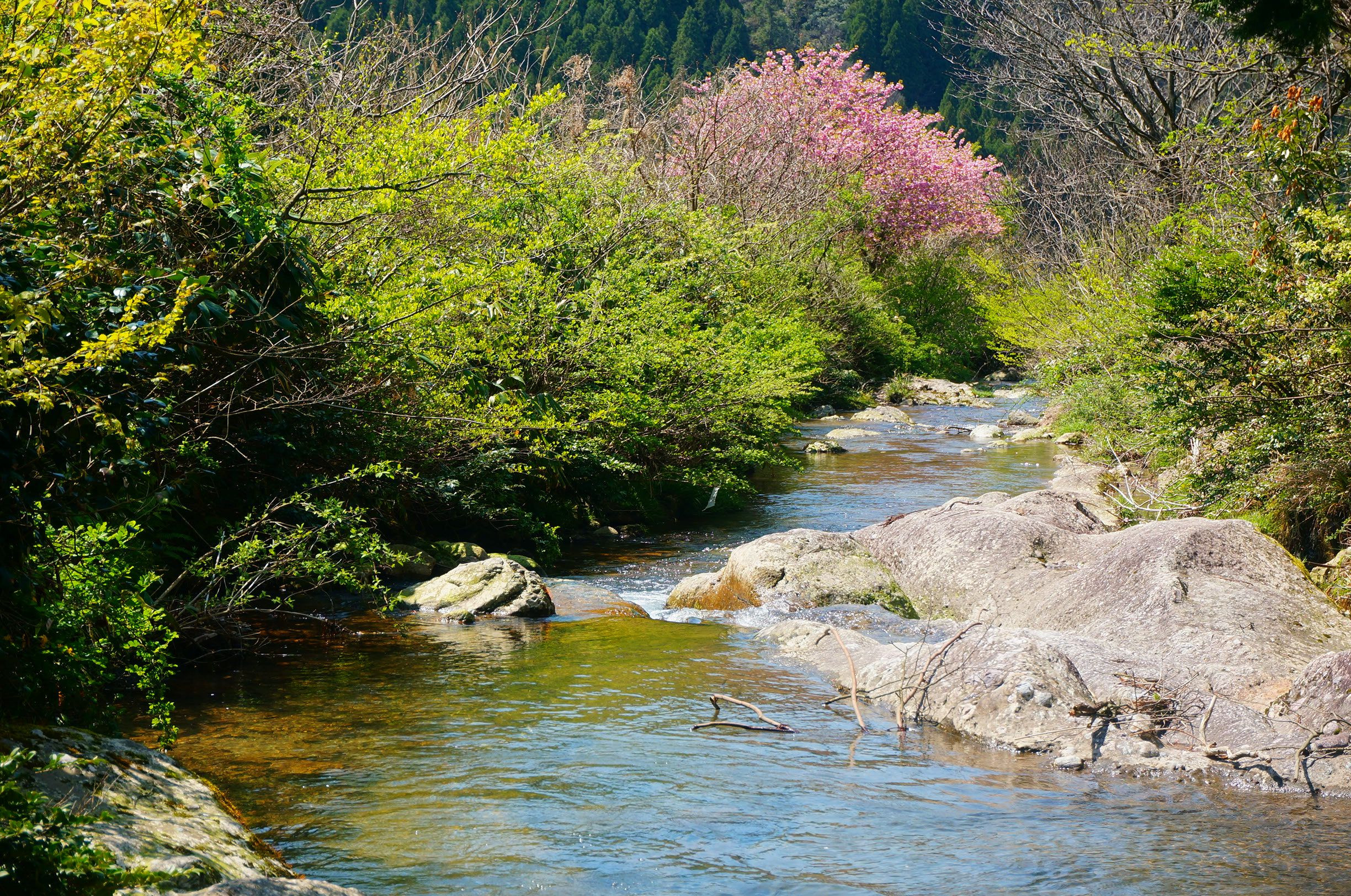 山桜でしょうか? 桜色よりこのくらいの濃さのピンク色の方が映えて好きです。