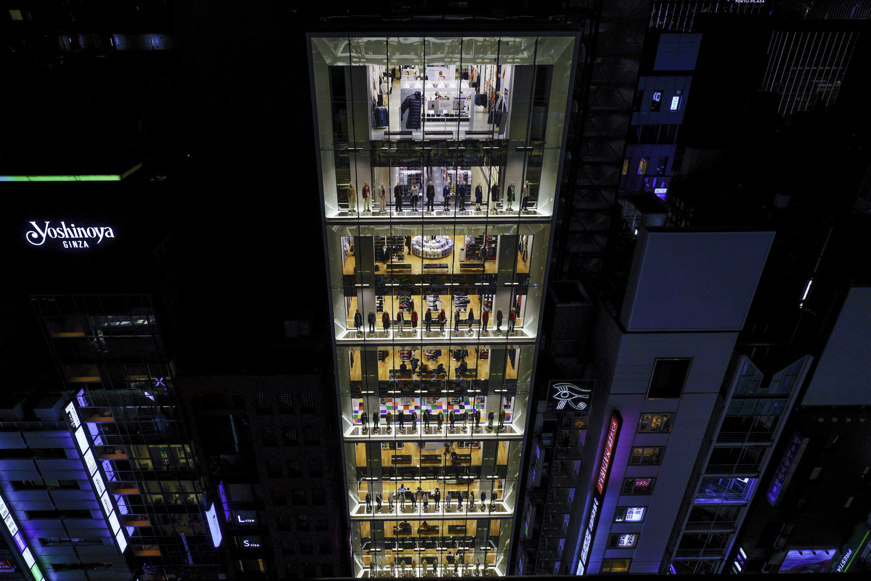 緊急事態宣言前の2月にGINZA SIX屋上から撮影。 ガラス張りで中が丸見えのユニクロ銀座店はカラフルで面白いです。 店は再開しましたが人入りはどうなんでしょうね?