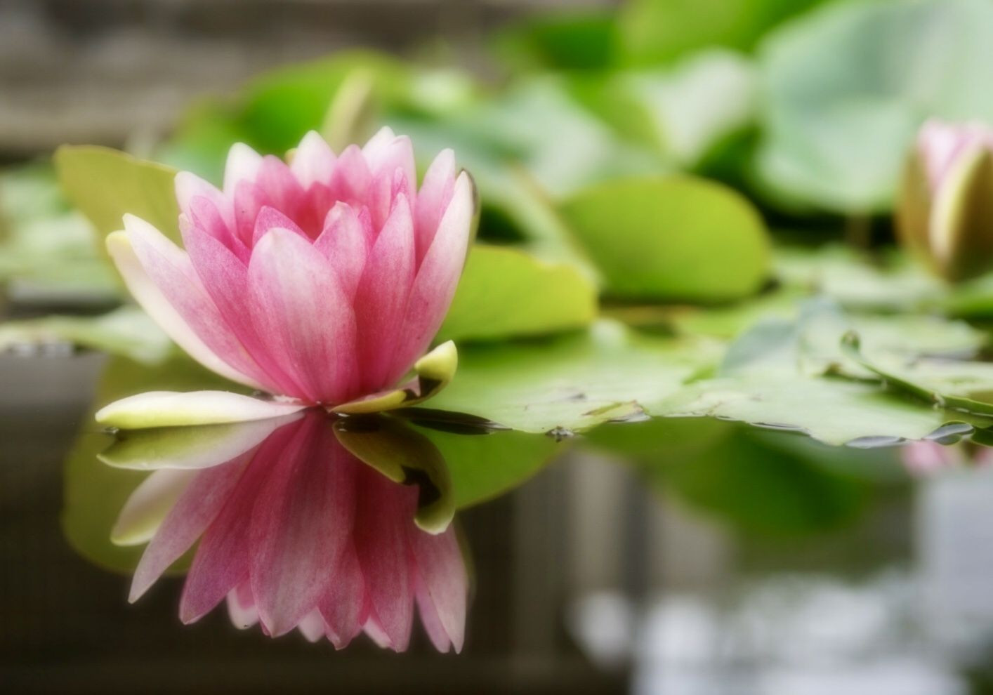 朝の散歩で見つけた小さな池に小さなスイレンが咲き始めていました。水面に映り込むスイレンと2倍の美しさを切り取りました。