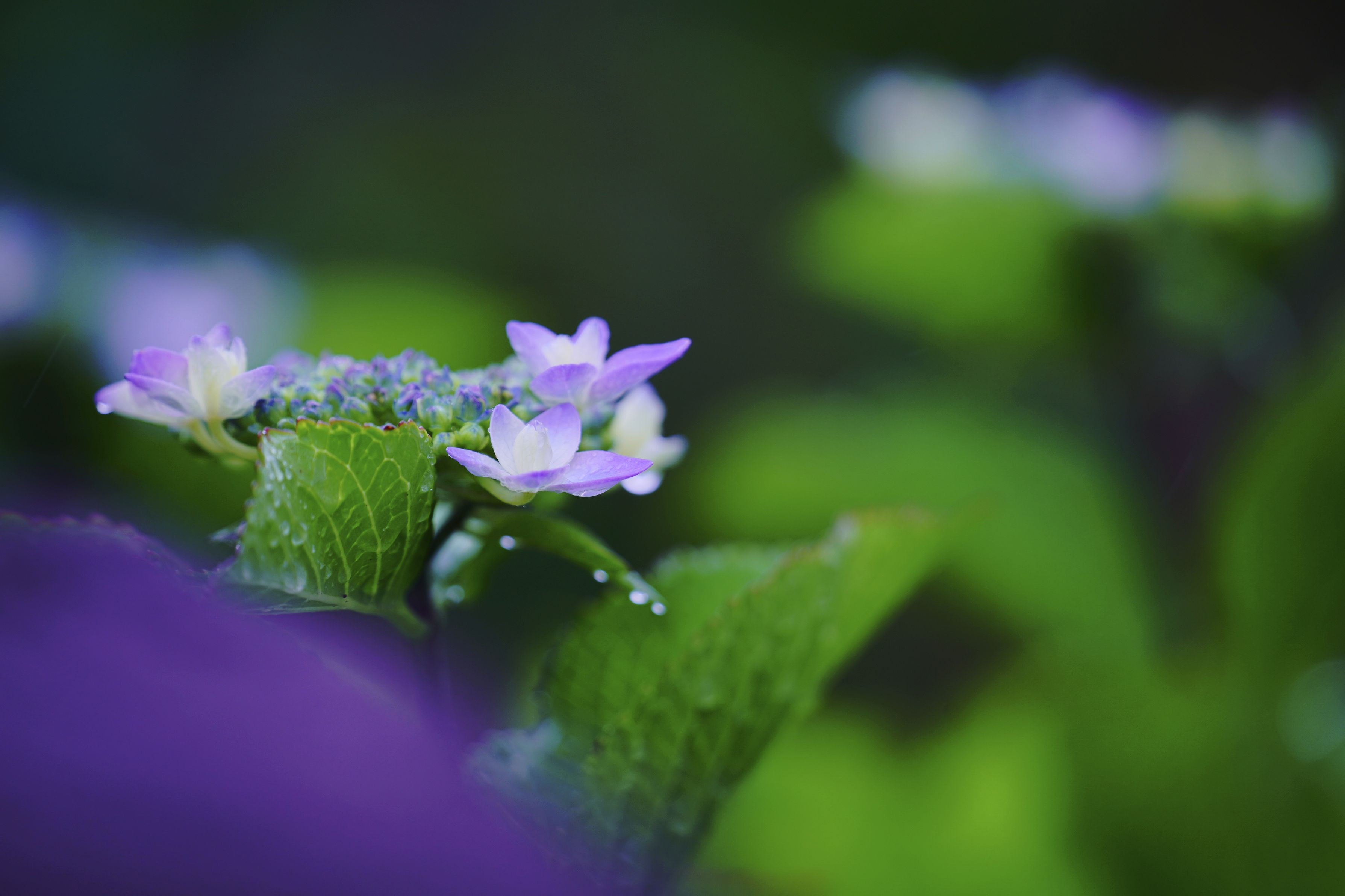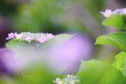 同じ場所です。1枚目は雨(上がり)、2枚目は曇天。少し意識して暗い感じと明るい感じで。やはり咲き始めは元気が良い気がします。ガクアジサイ
