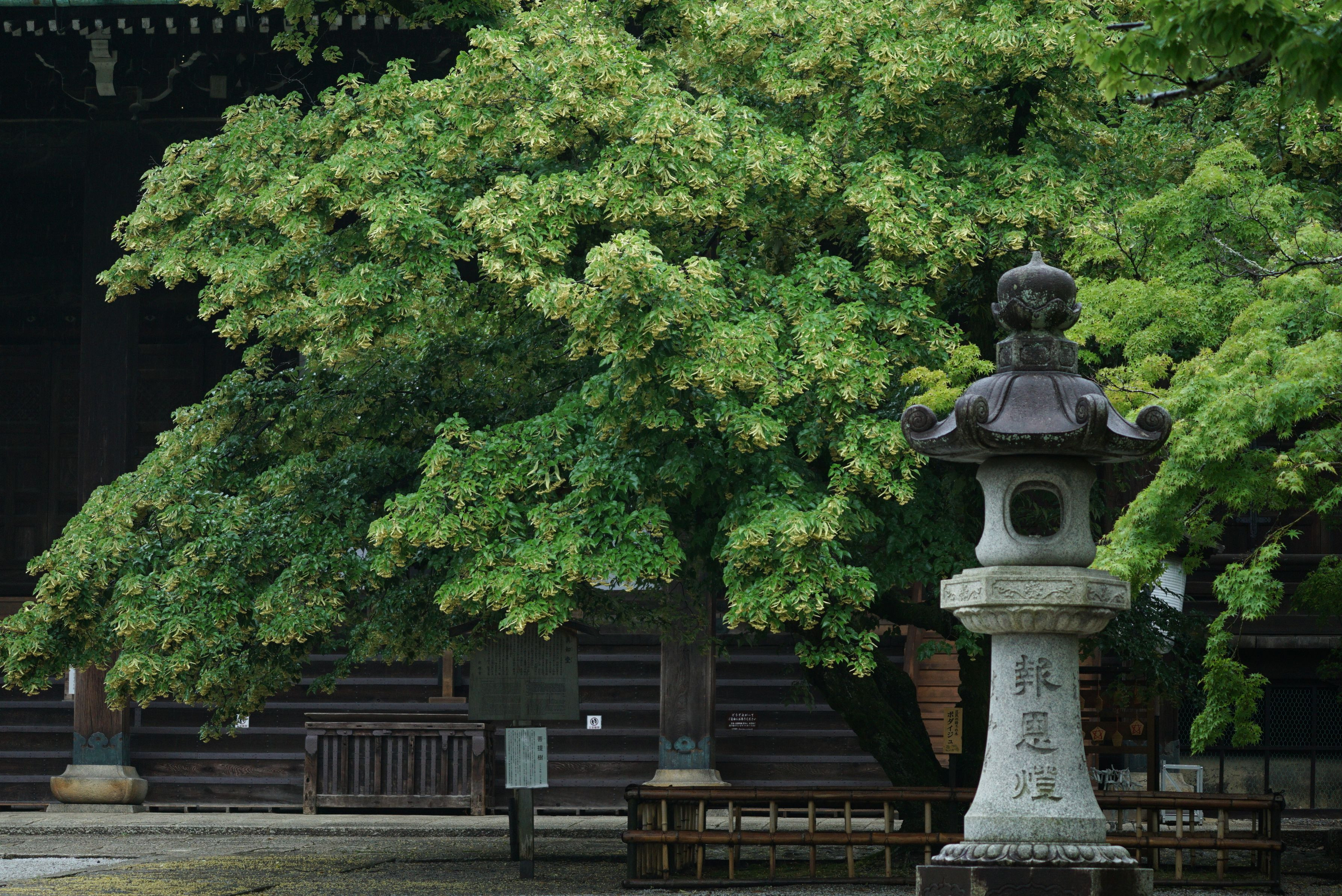 真如堂さん本堂の前、菩提樹の花が満開となっている。