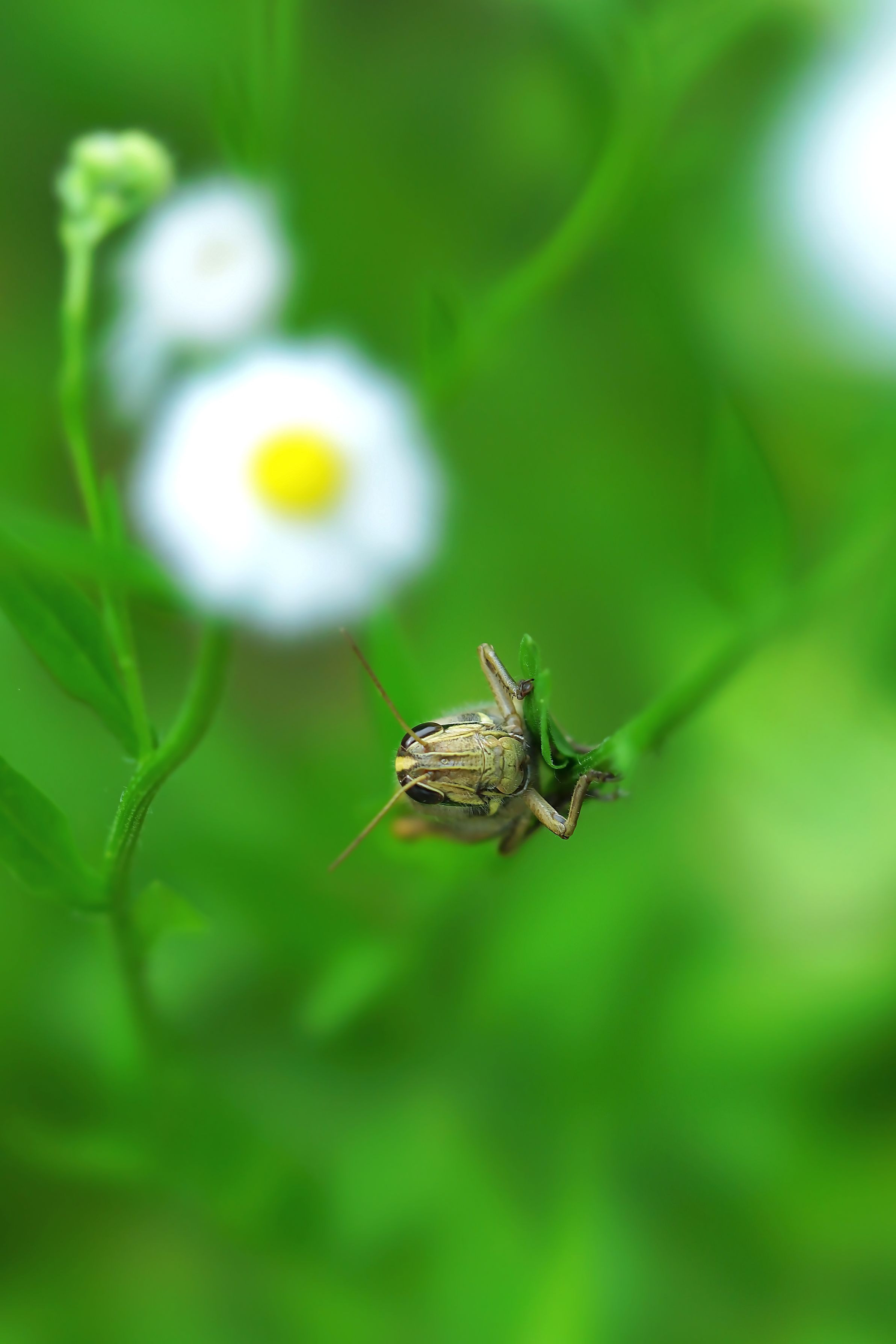 ハルジオンにツチイナゴらしきバッタが・・・。