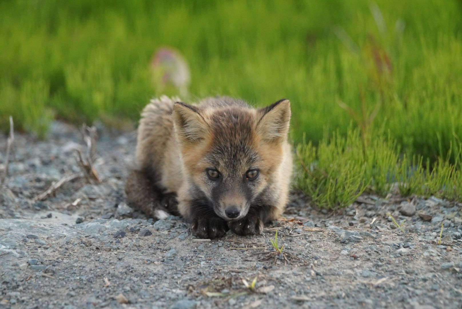 珍しい十字狐の子供に出会いました。