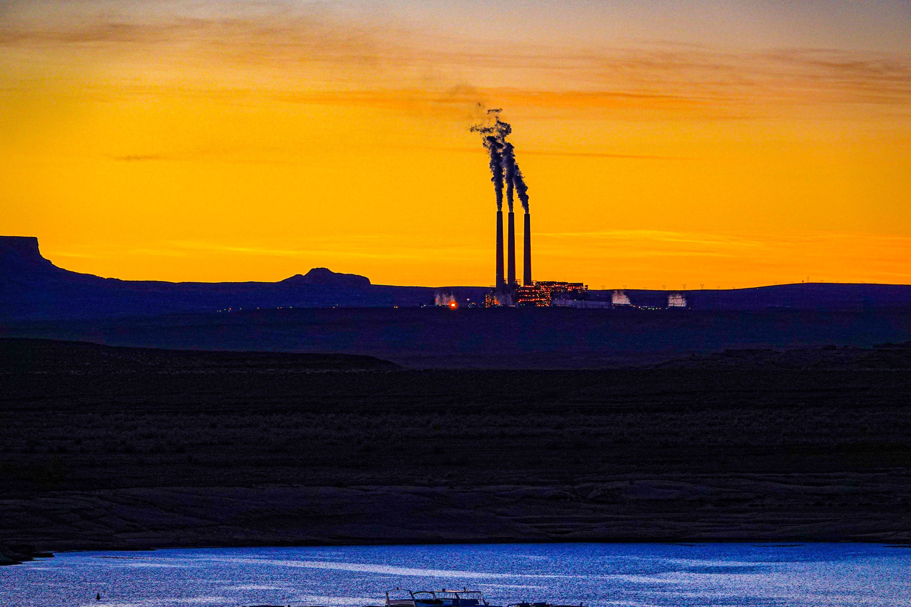 象徴的な3本煙突のある工場が朝焼けを背景にシルエットになるように狙った。湖もブルーになってオレンジとの対比が印象的だった。