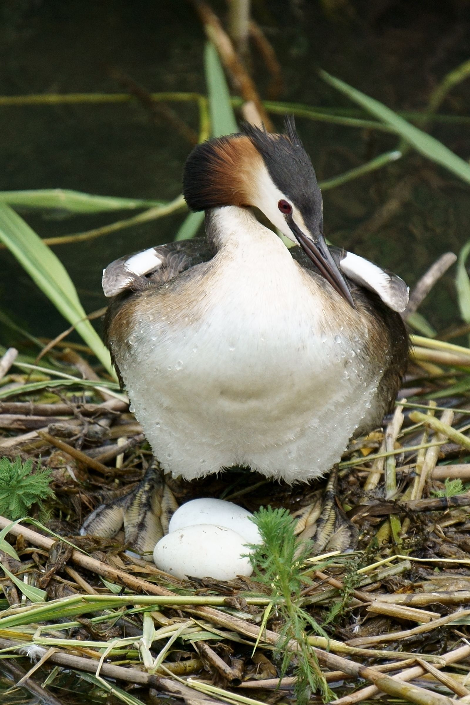 知らずに立ち寄った川が どうやらカンムリカイツブリの繁殖地だったようで ちょうど抱卵してました