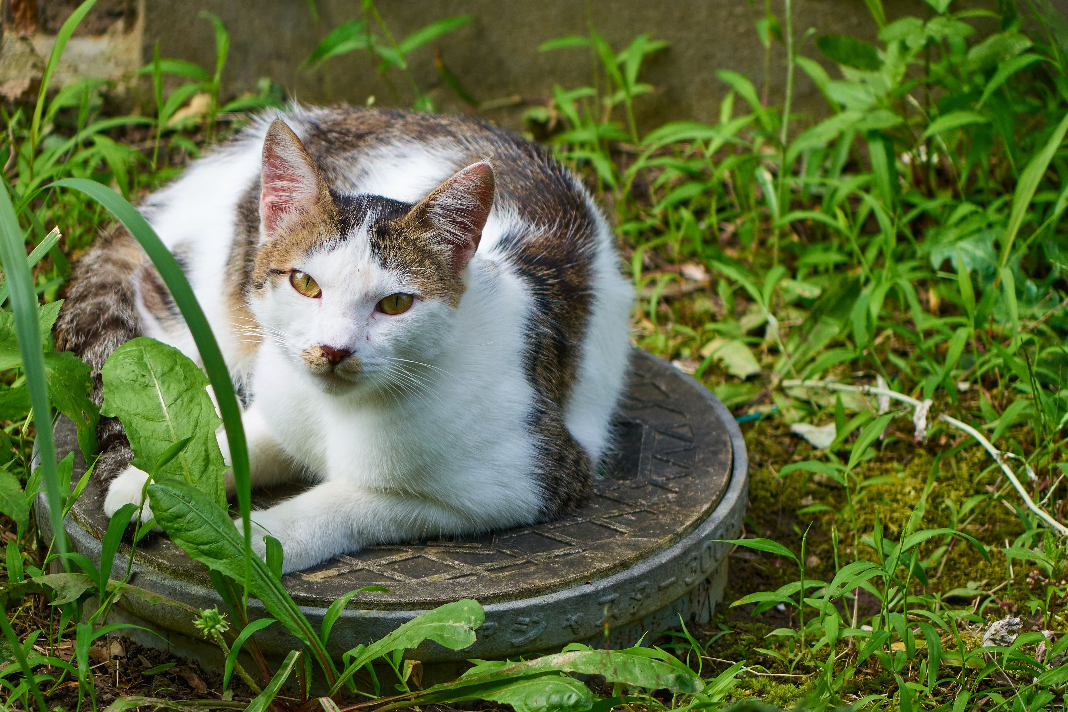 小さなマンホールもネコサークル(ねこホイホイ)なのかな? 随分と寛いでるけど・・どこかにワープしちゃうよ(;^_^A