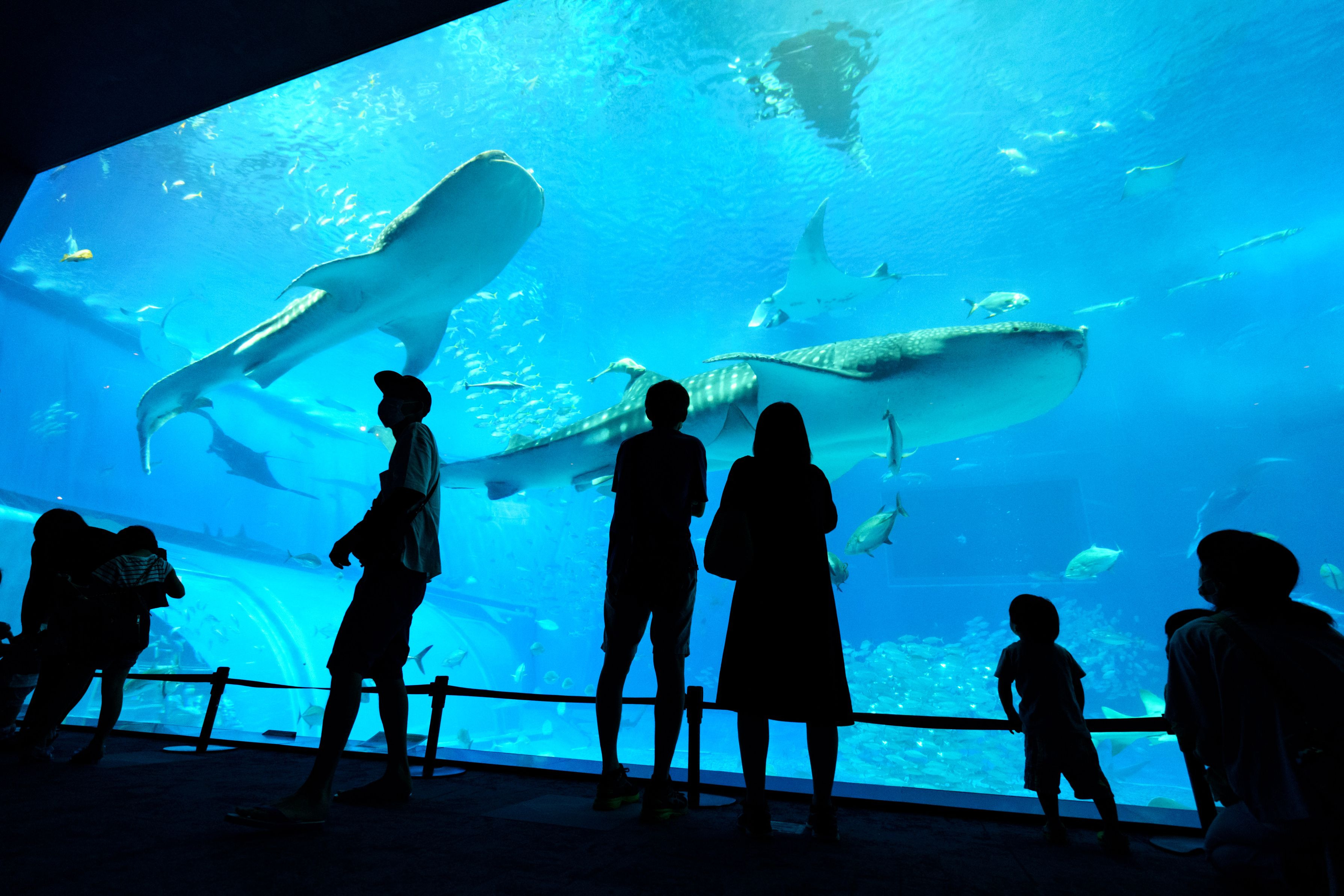 美ら海水族館の有名なジンベイザメです. ぐるぐる回ってくるたびにやっぱり見上げちゃいますね.