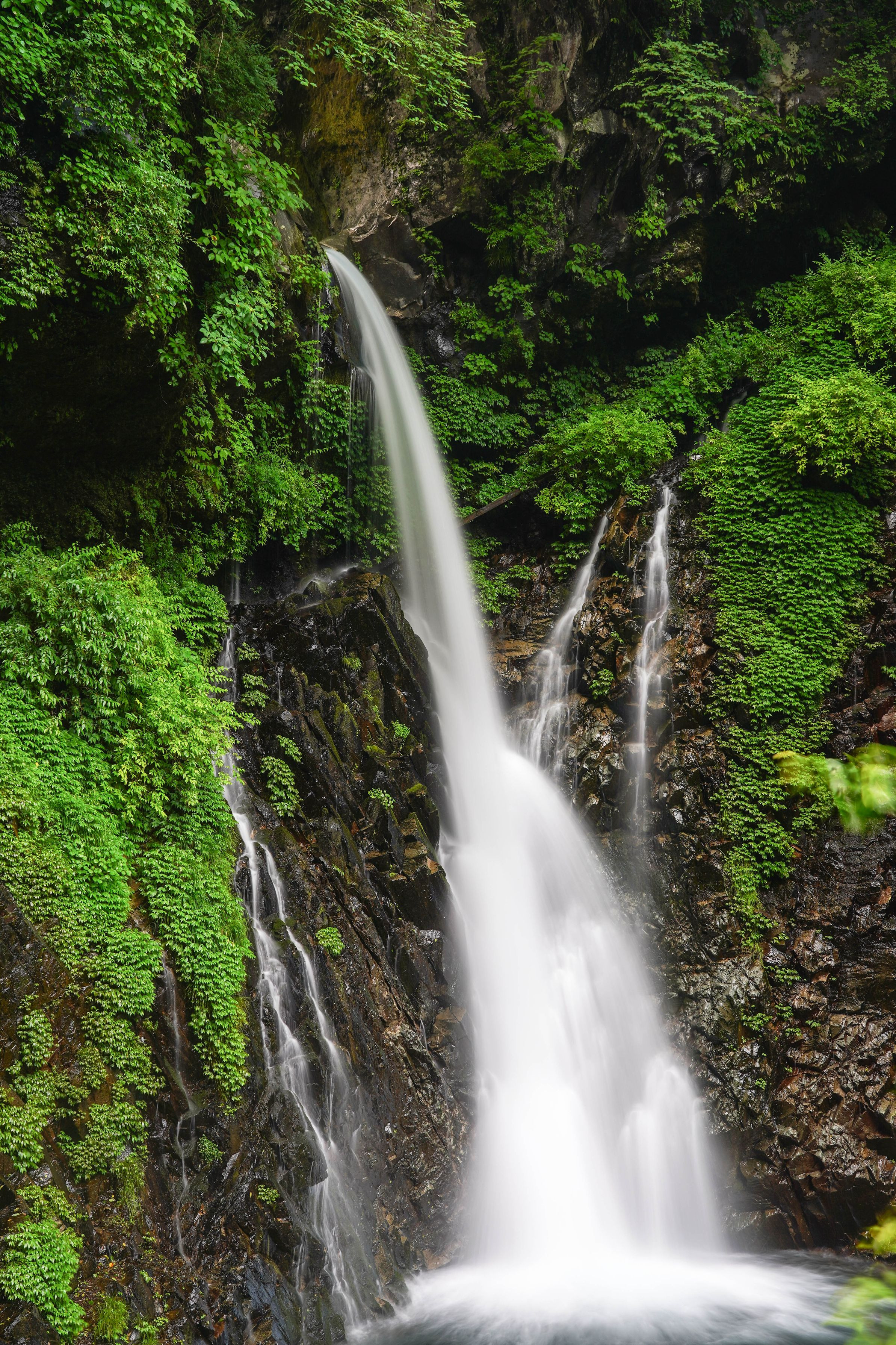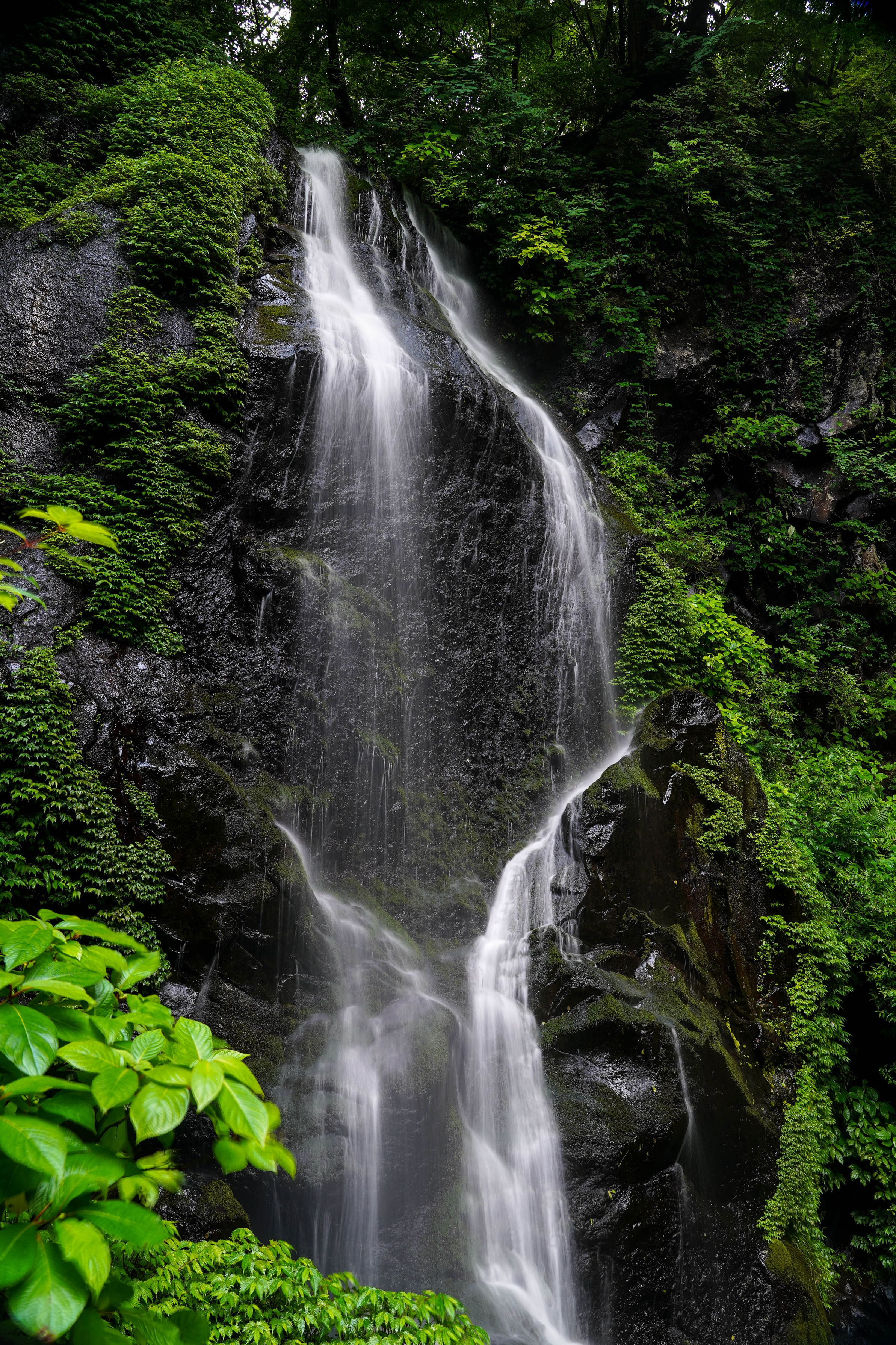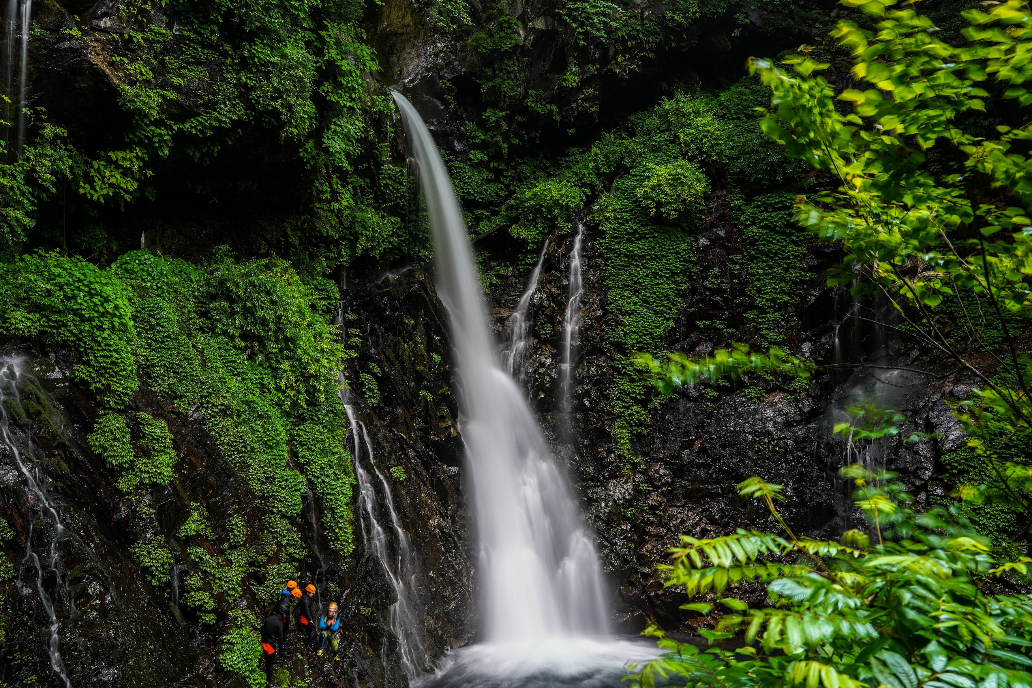 降雨を待て渓谷撮影へ 苔のしっとり感、岩盤の質感、清流のい美しさをめがけて日光の裏見の滝へ出かけた 降雨で水量が増えていつもと違った表情がおもてなししてくれた ゲストにはキャニオニングの方たちも^^