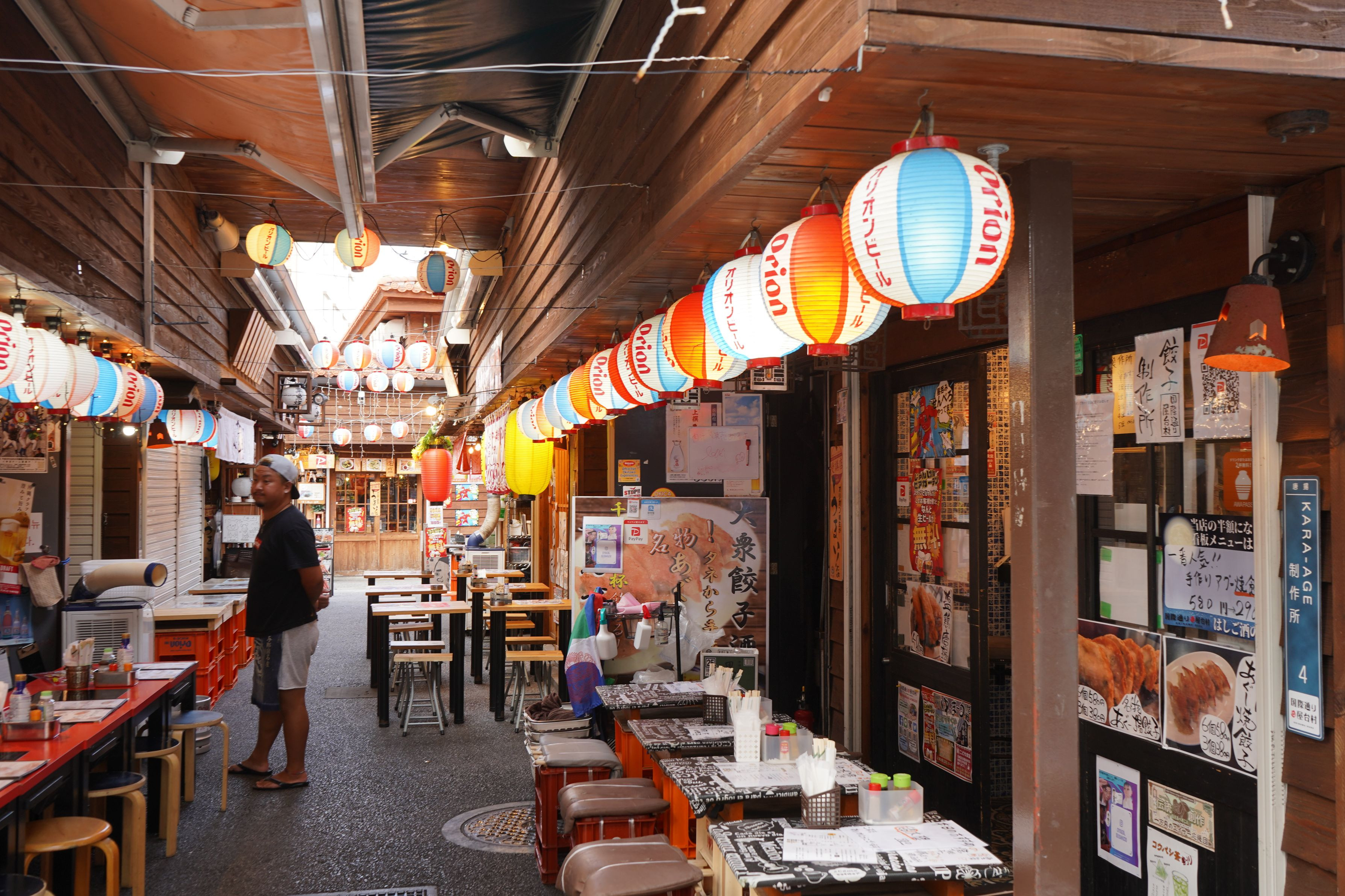 まだ早い時間の屋台村。早くコロナが収まってお客さんで賑わいますように。