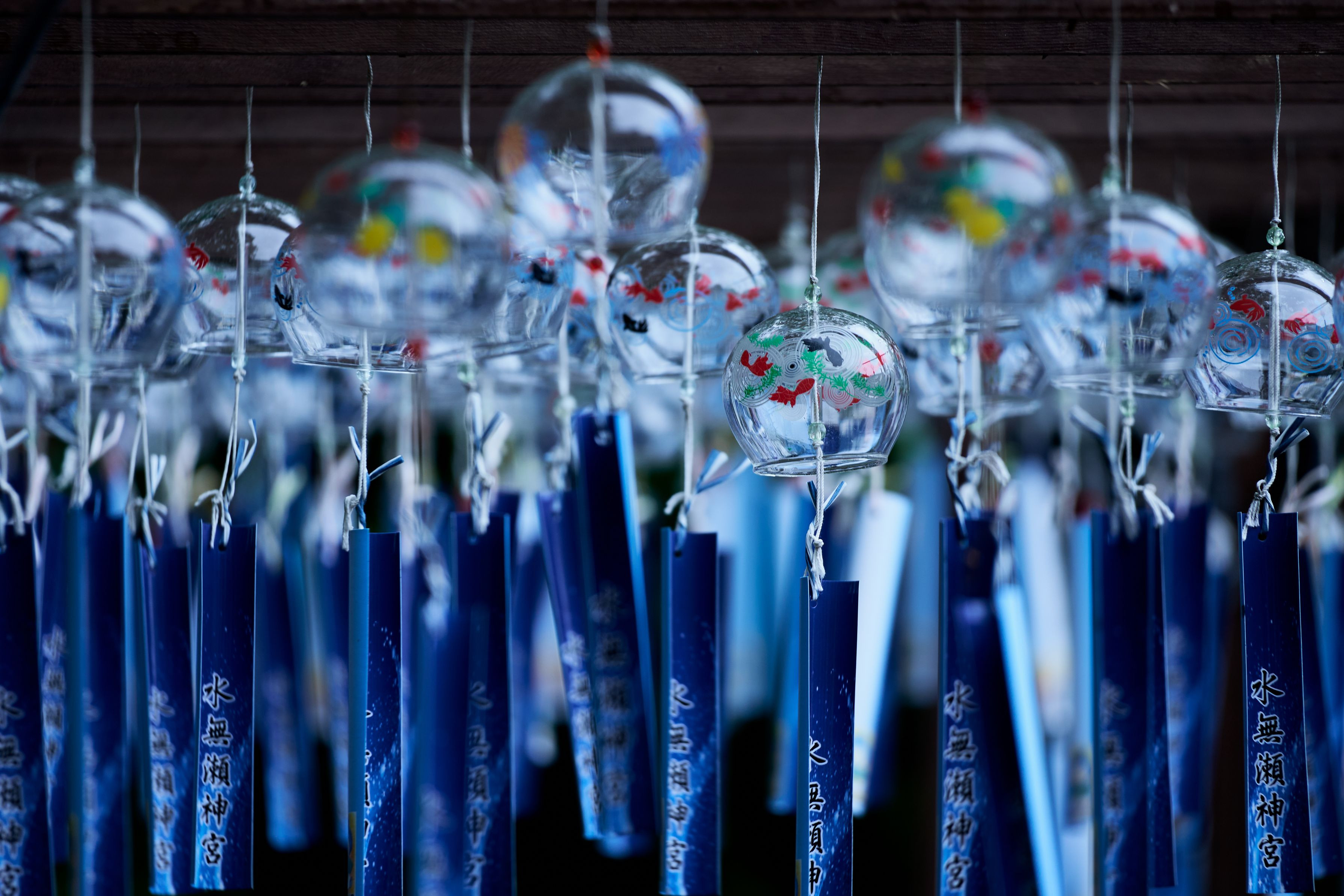 水無瀬神宮です。風鈴の音は元々お祓いで使われていたそうです。
