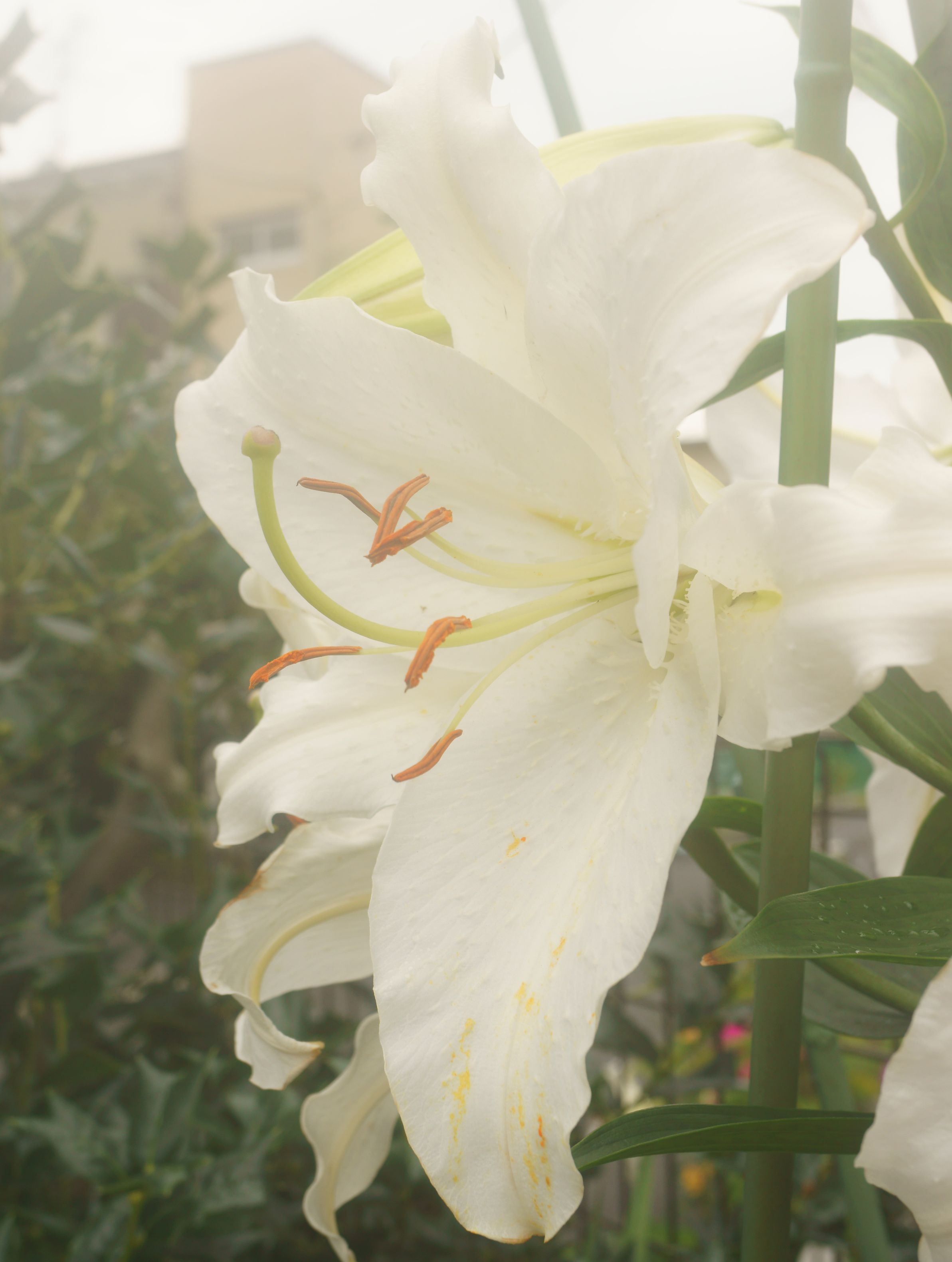 小雨(傘が要るかどうかの「超」が付くような)を靄の様に見せる事が出来るか?と思い、1/2 Fog フィルター使いました。メインの被写体の色が白なので、ホワイトバランスはオートで現像時にちょっと弄りました。