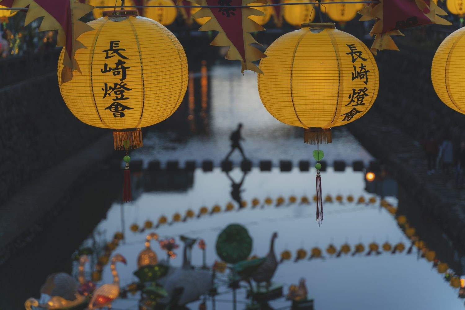 長崎県のランタンフェスティバルを訪れた際に撮影した1枚。 夕暮れ時のブルーアワーの中、ランタンのオレンジ色の光に街が染まり始める瞬間がとても綺麗でした。