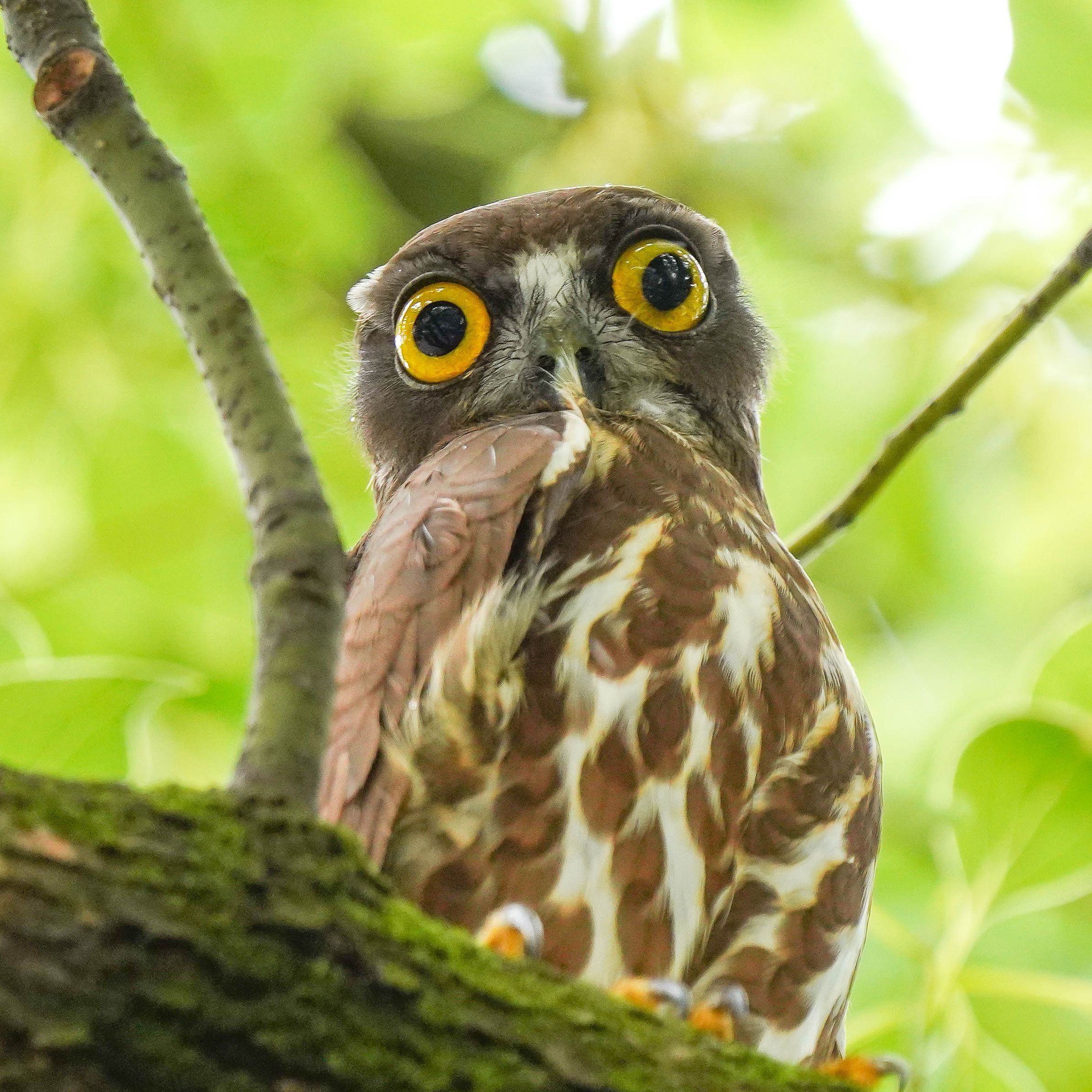 #アオバズク# 今年もいつもの楠木に来てくれました。 ちょっと左目がいびつ?